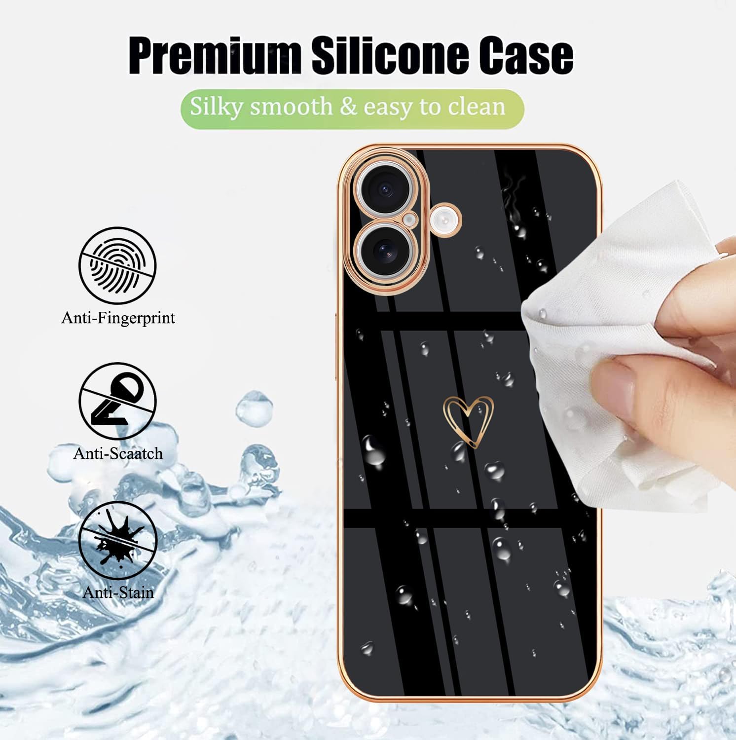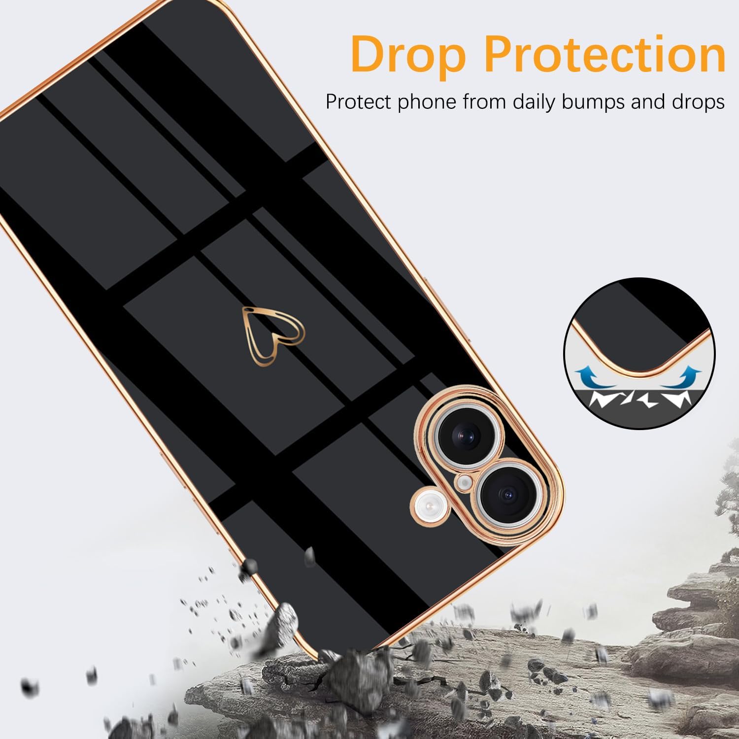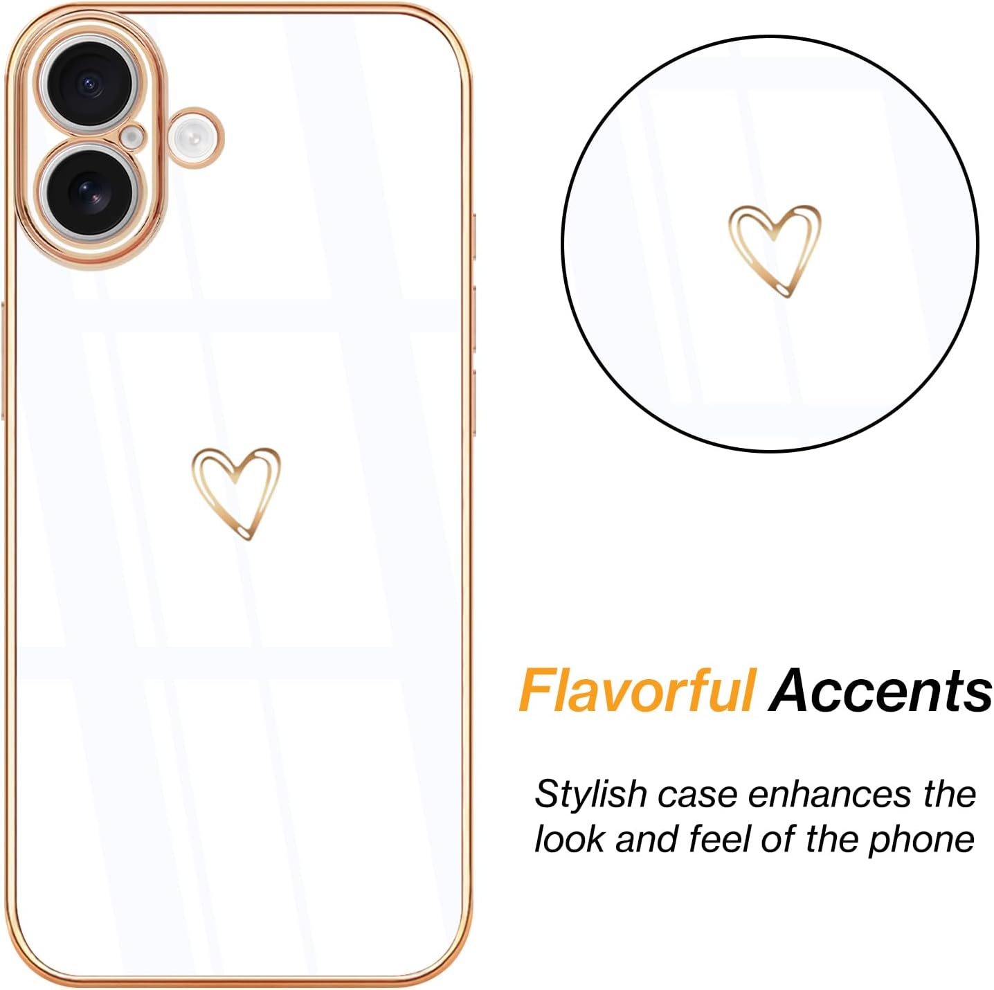 Design unique : design créatif et mignon en forme de cœur, la coque pour iPhone 17 est fabriquée en TPU flexible et le bord du pare-chocs et le bord de l’appareil photo adoptent la technologie de galvanoplastie dorée, ne se décolore pas, et le toucher doux et confortable rend votre téléphone plus attrayant, élégant, différent et accrocheur.