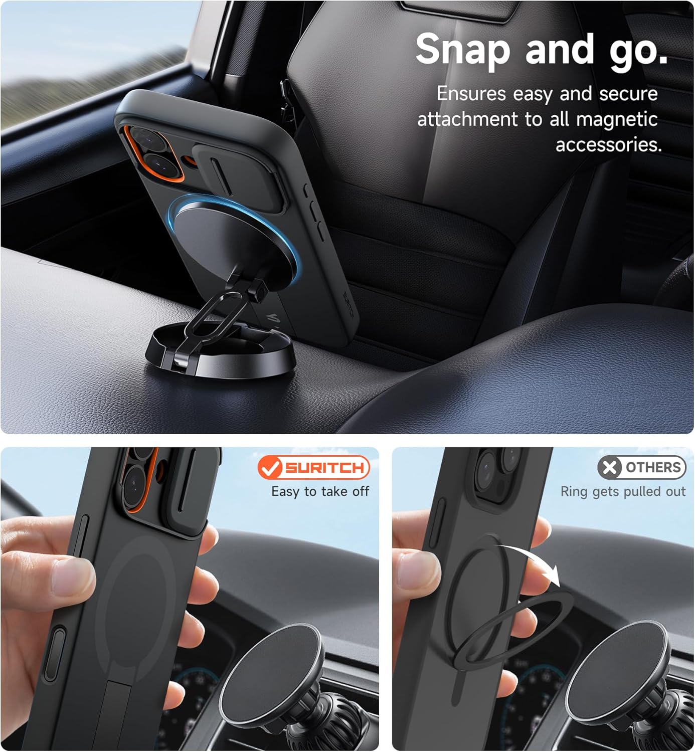 Fixation magnétique sécurisée : avec une puissance magnétique élevée (jusqu’à 13,28 N), cette coque fine garantit que votre téléphone reste solidement fixé aux accessoires magnétiques tels que les chargeurs sans fil, les supports de voiture et les banques d’alimentation.