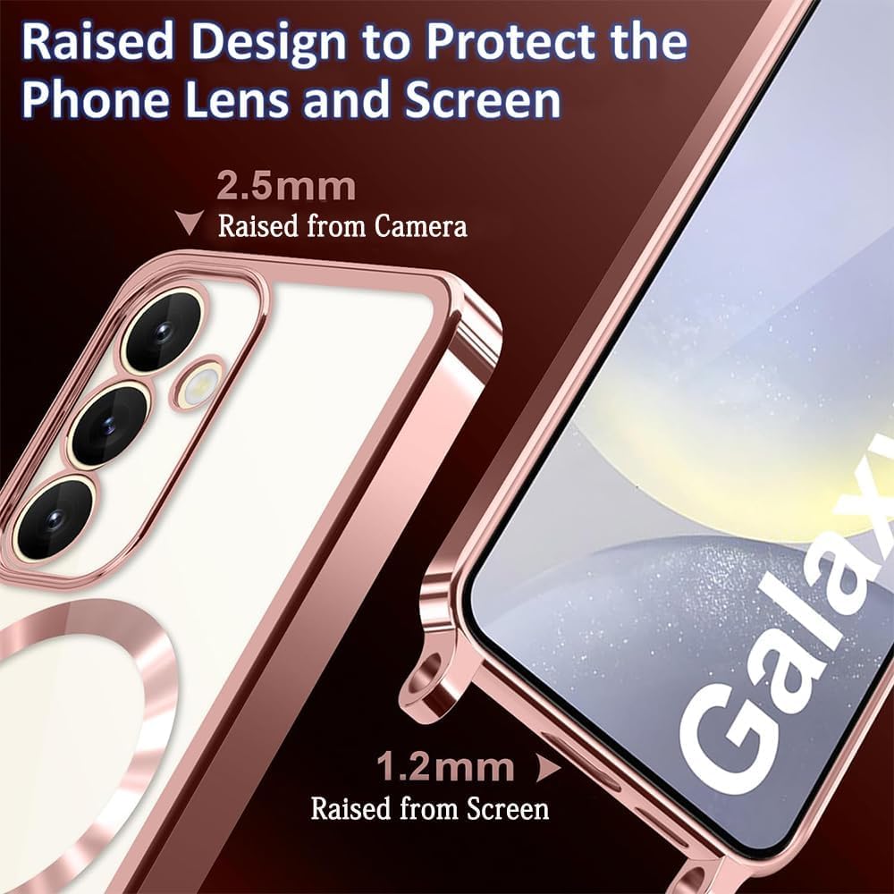 (Coque galvanisée brillante avec cordon) : Coque pour Samsung Galaxy S25 Edge. La particularité de cette coque magnétique avec dragonne pour Samsung Galaxy S25 Edge réside dans les bords brillants, la surface galvanisée donne au design général une touche d’élégance et de sophistication. La nature réfléchissante des bords améliore l’apparence du téléphone et en fait un véritable accroche-regard. Et le dos est en silicone transparent pour afficher la beauté originale du design Samsung.