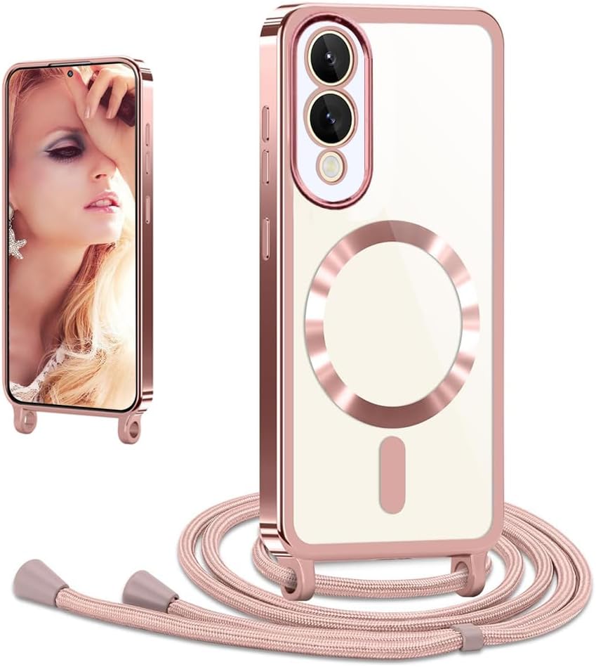 coque Samsung s25 Edge – CaseLover Coque avec cordon pour Samsung Galaxy S25 Edge, coque magnétique pour téléphone portable avec cordon en silicone transparent avec collier réglable, chaîne de téléphone, lanière, or rose