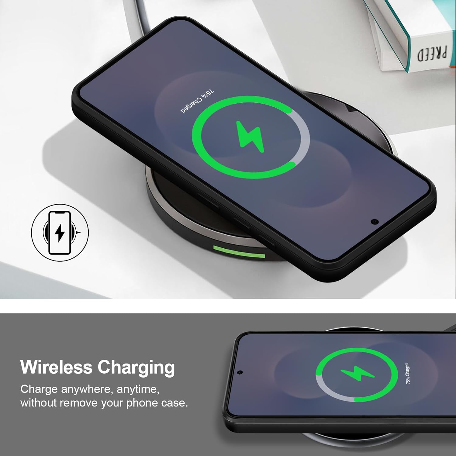 Compatible avec : coque en silicone pour Samsung Galaxy S25 Edge. Prend en charge le chargement sans fil sans retirer la coque.