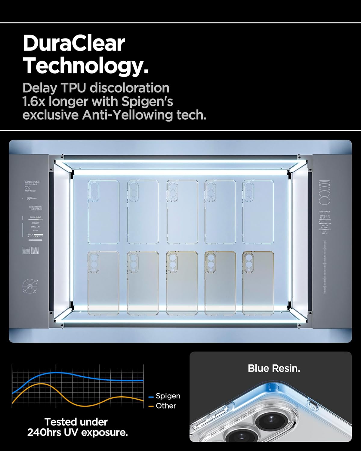 (Toujours transparent) Dura-Clear, matériau premium et distinctif de Spigen, protégera l’aspect cristallin de votre téléphone du jaunissement