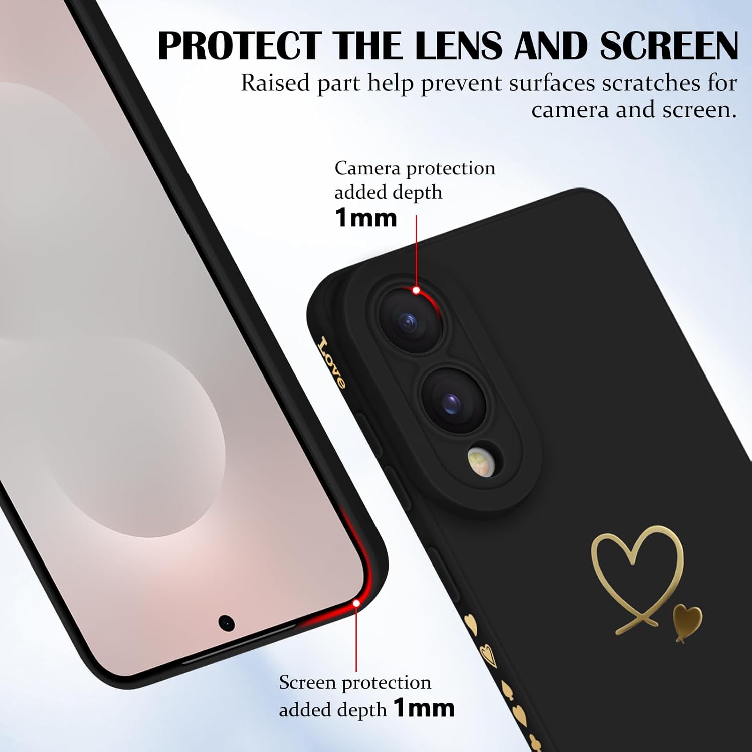 Étui pour smartphone noir avec motif cœur doré, offrant plusieurs options de couleurs. Comprend une protection d'objectif complète et des découpes précises pour le Galaxy S25 Edge (Étui pour smartphone noir avec motif cœur doré, offrant plusieurs options de couleurs. Comprend une protection d'objectif complète et des découpes précises pour le Galaxy S25 Edge (
