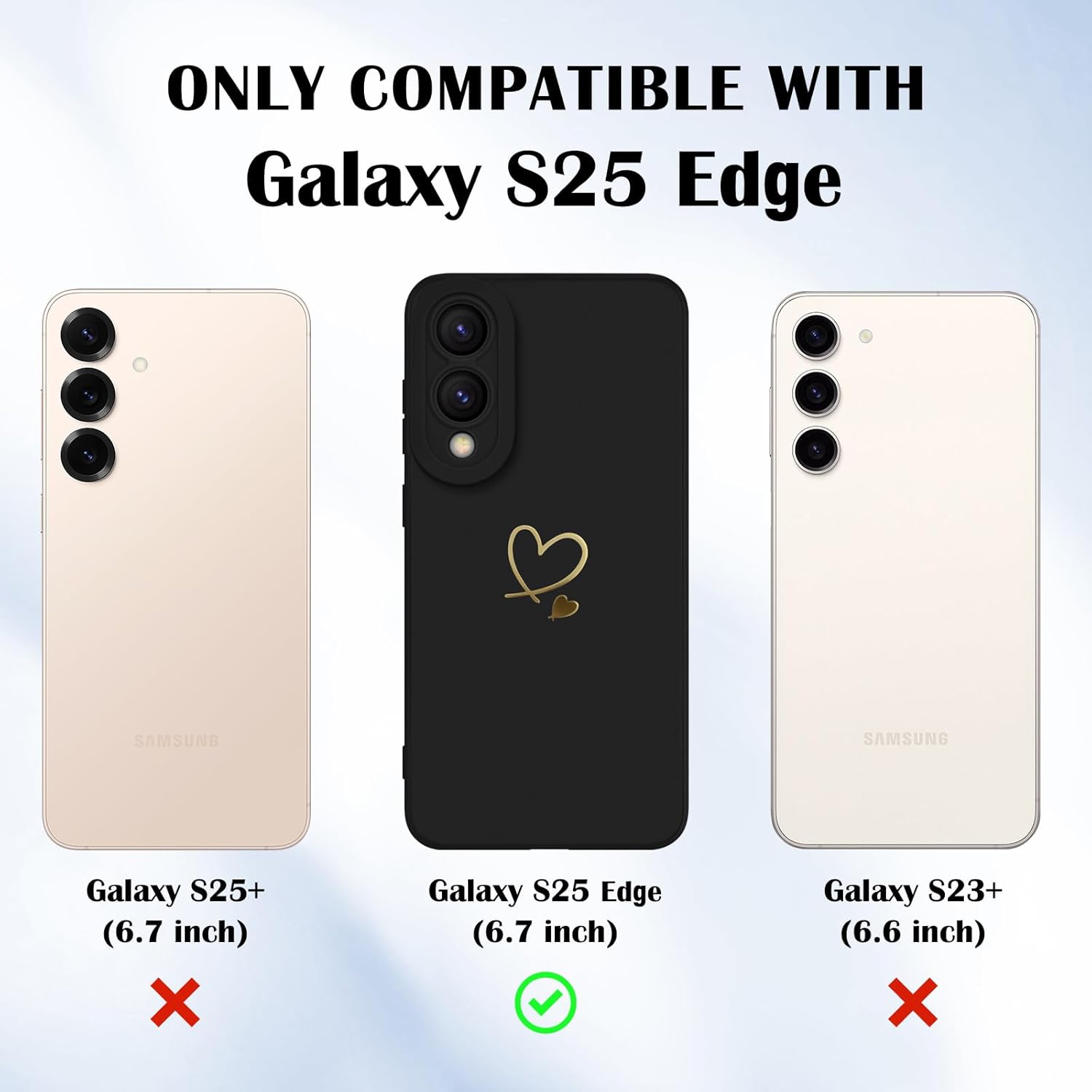 coque Samsung s25 Edge – Newseego Coque pour Samsung Galaxy S25 Edge, motif cœur d’amour doré en silicone souple, mignon, esthétique, résistant aux chocs, fine coque de protection compatible avec Samsung S25 Edge Noir