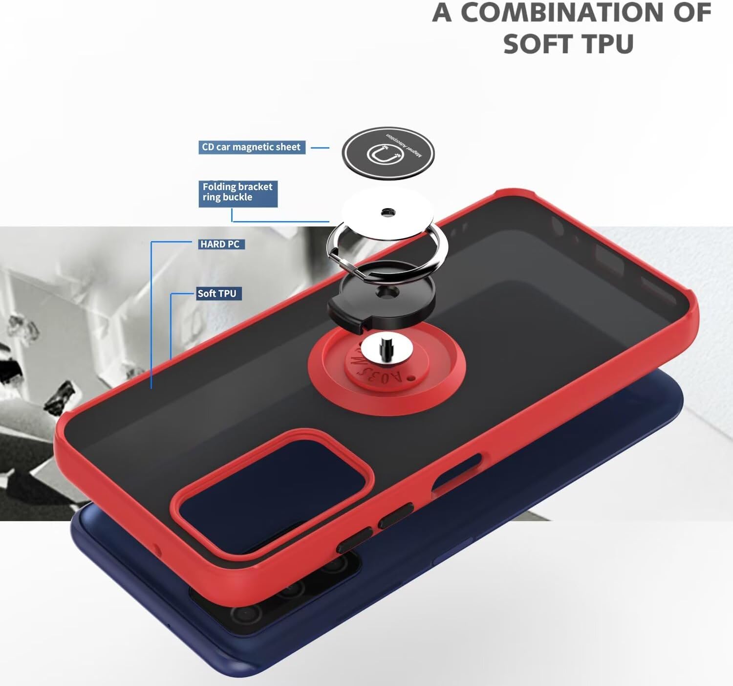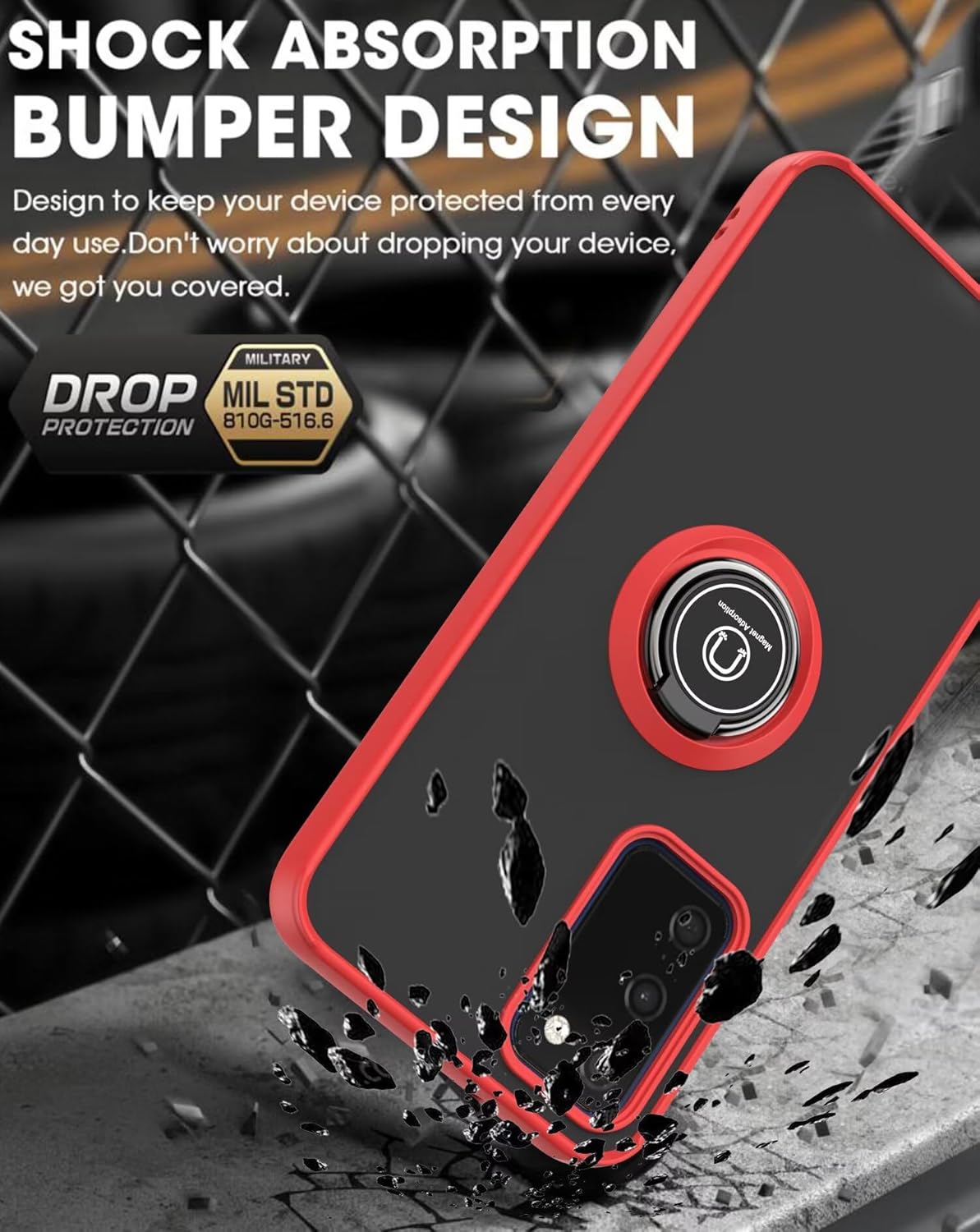Caractéristiques : anneau de support rotatif, base magnétique, coque arrière transparente givrée antisalissure.