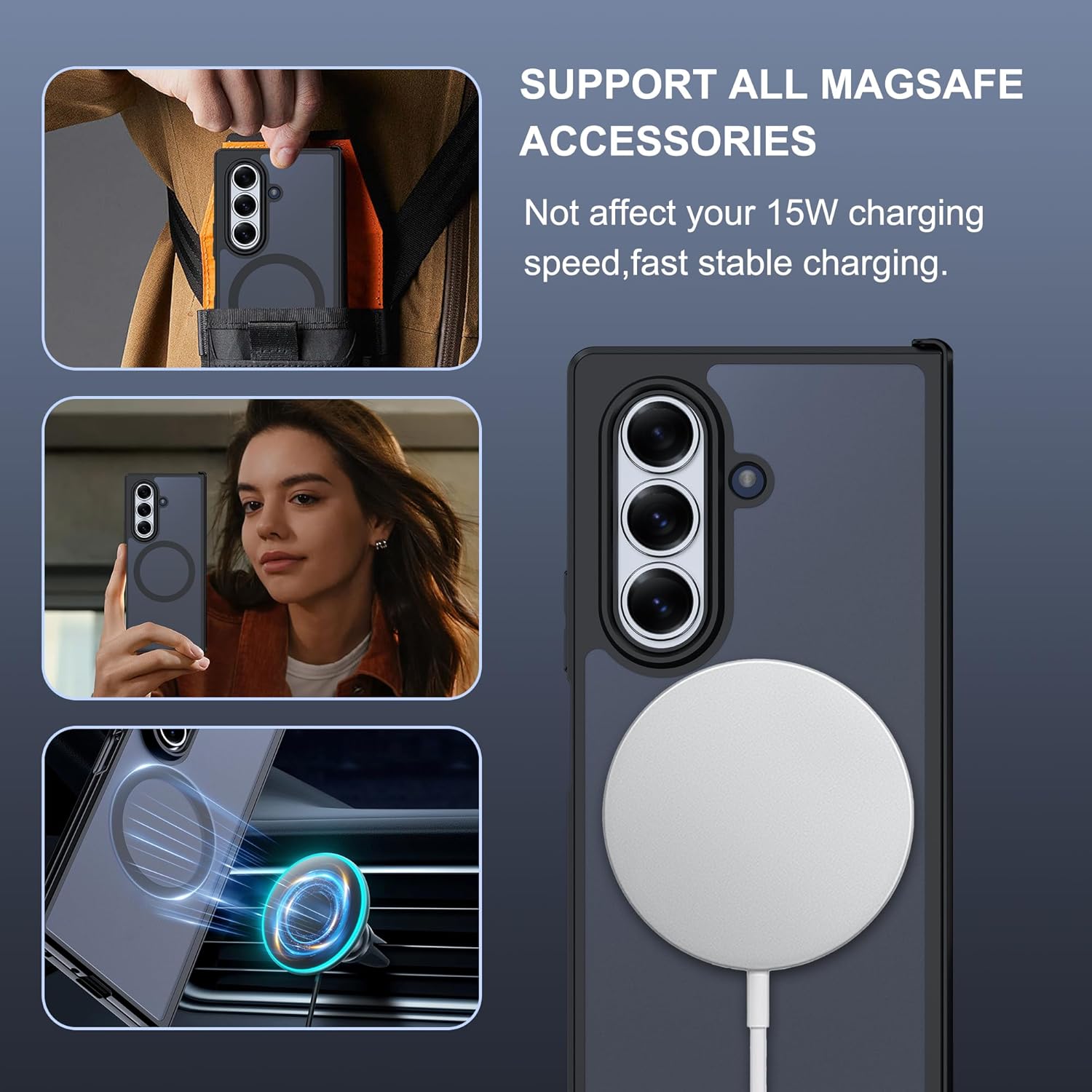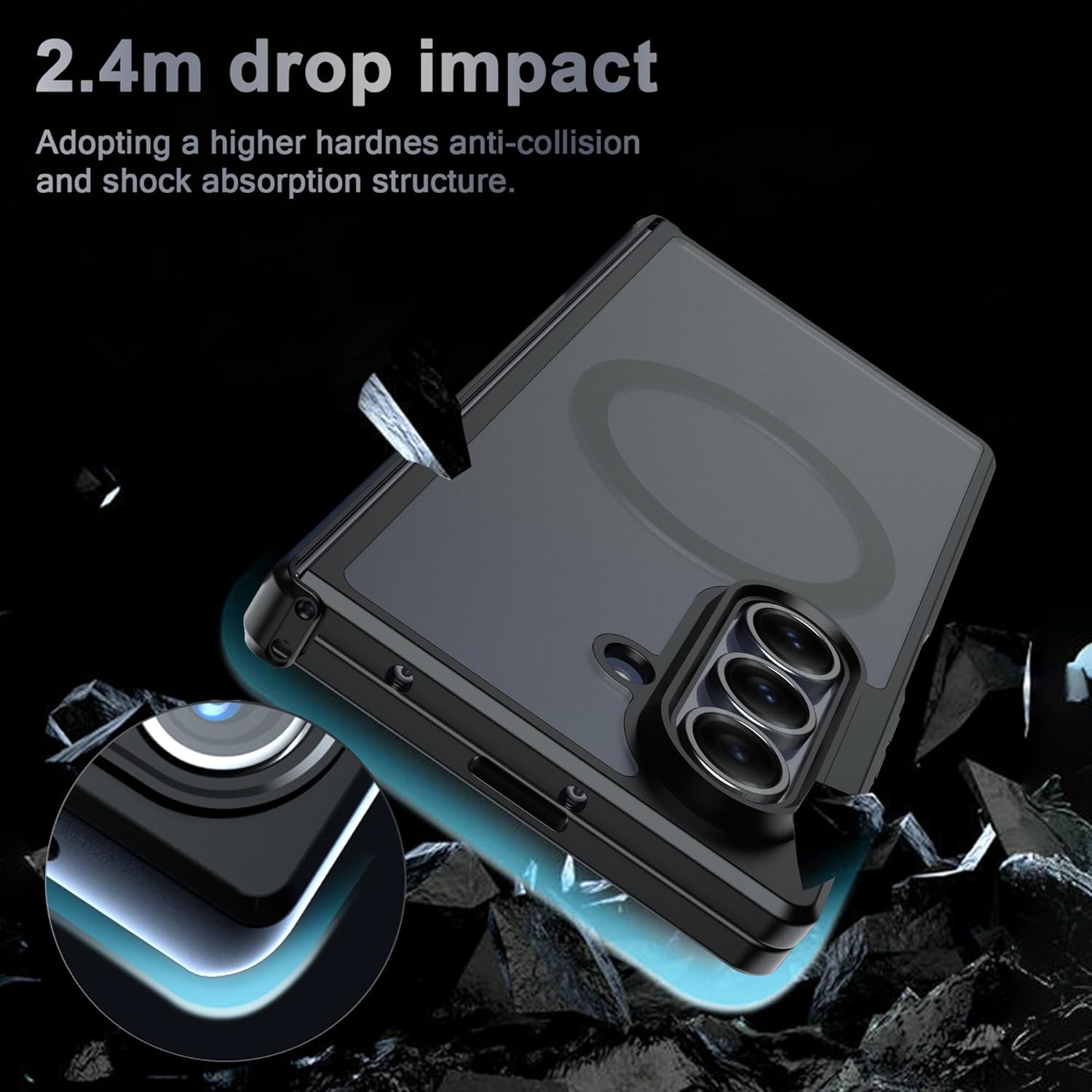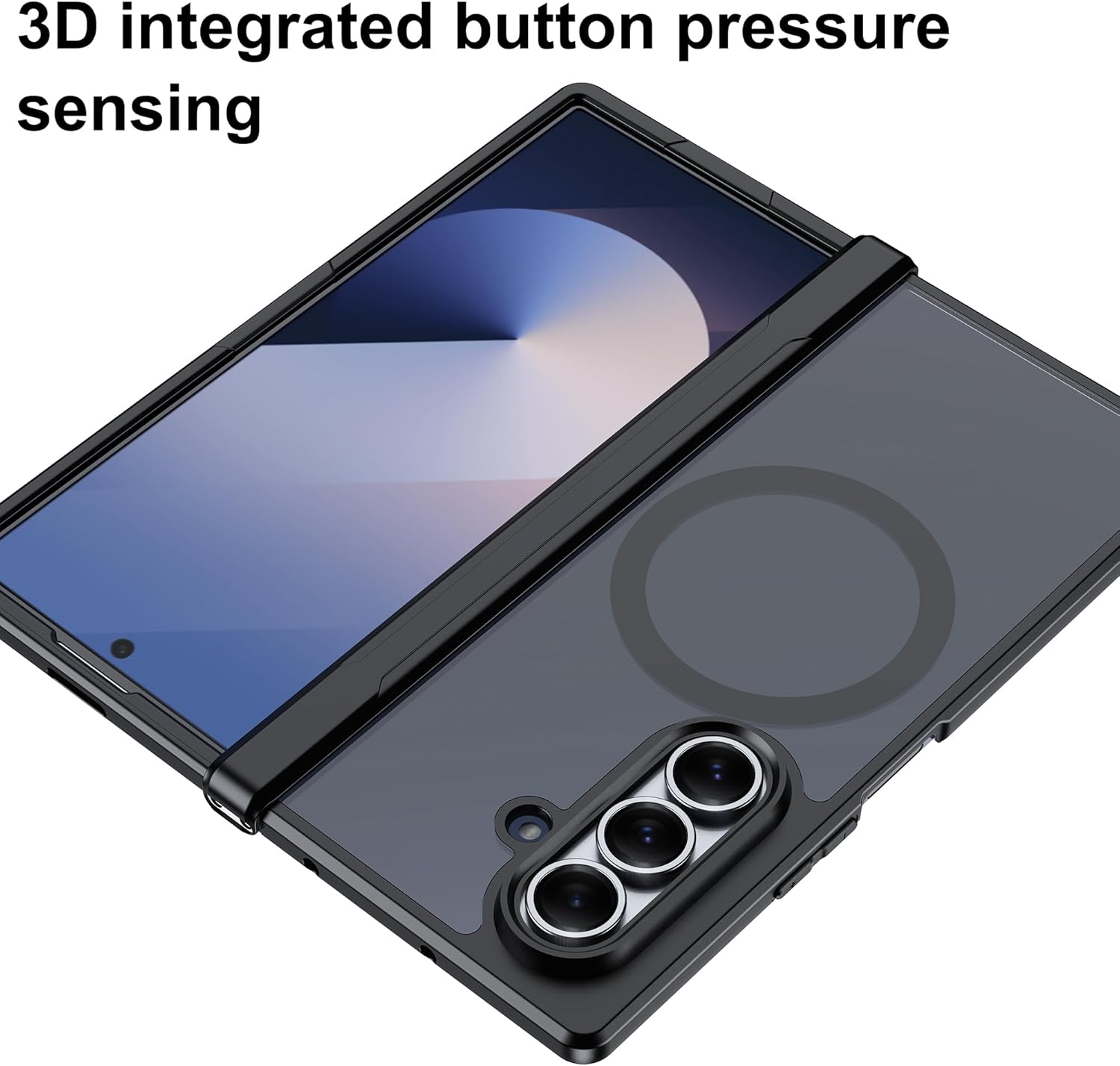 (Super Magnetica Adsorption) Notre étui Magsafe Samsung Galaxy Z Fold 7 5G est conçu avec 38 aimants N52 puissants qui forment un ensemble intégré pour doubler la force d’attraction magnétique. Il garantit que votre téléphone ne bougera pas ou ne tombera pas, qui peut être fermement attaché au chargeur pour une charge sans fil stable et efficace.