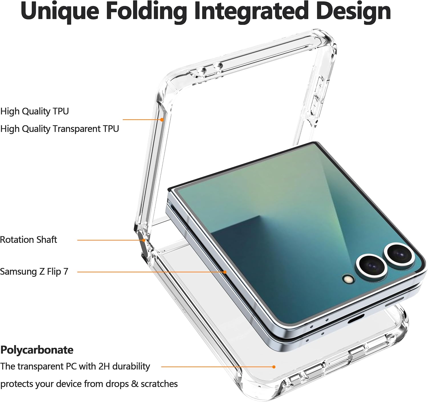 (Pare-chocs avec coins renforcés): Le boîtier de protection Galaxy Z Flip 7 a des coins renforcés, il peut se connecter au boîtier de téléphone de haut en bas, et il n’affectera pas la fonction de pliage de votre téléphone Samsung Galaxy Z Flip 7. Il a également un revêtement anti-doigté, il montre la couleur du téléphone et préserve sa beauté, jamais jaune.