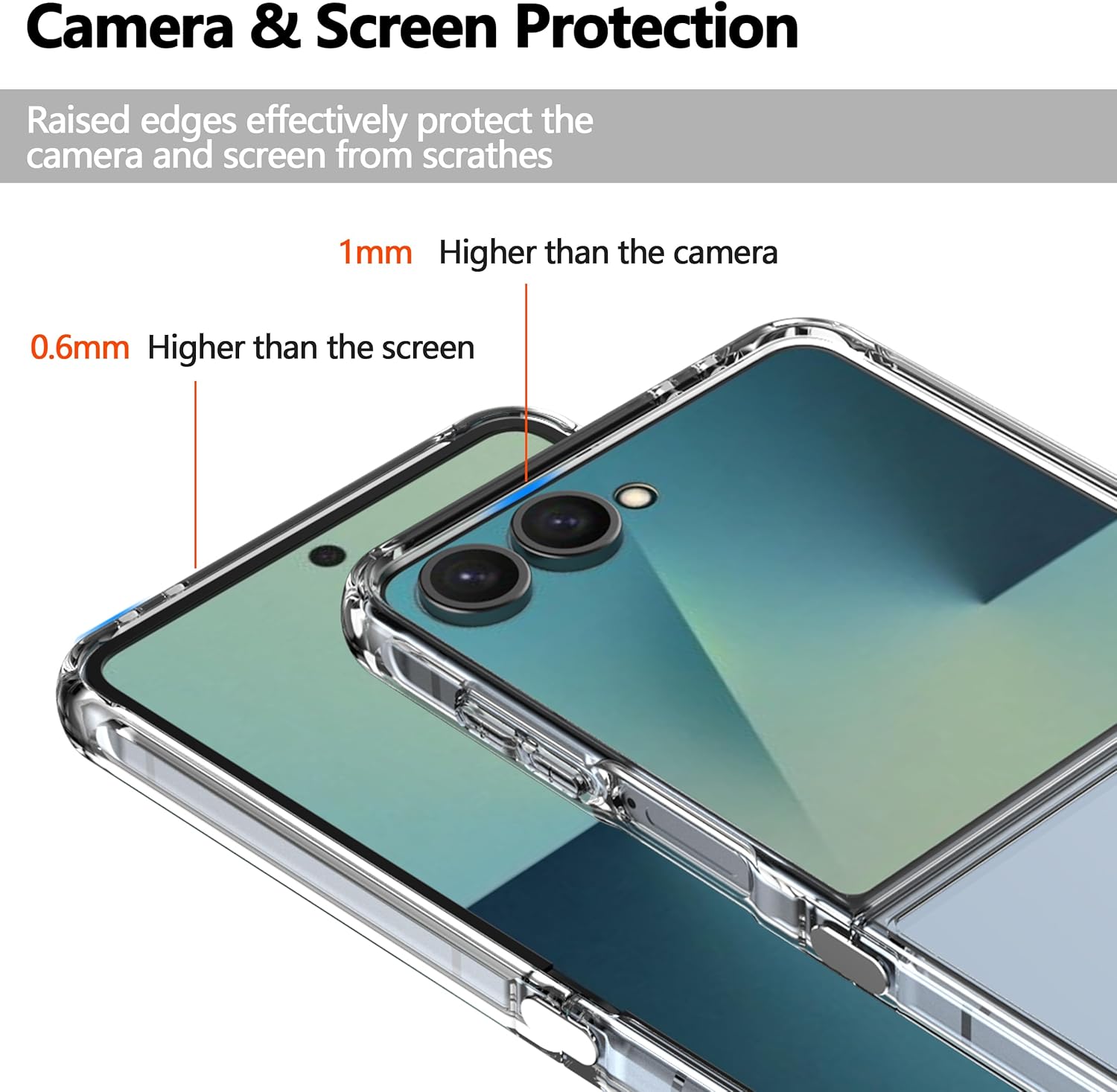 【Protection de l’écran et de la caméra】 Le boîtier Z FLIP 7 offre une protection subtilement améliorée tout en restant mince. Les bords surélevés de 0,6 mm et les bords de protection de 1 mm sur ce cas dur offrent un maximum de protection anti-rayures et de goutte pour protéger ce que vous aimez.