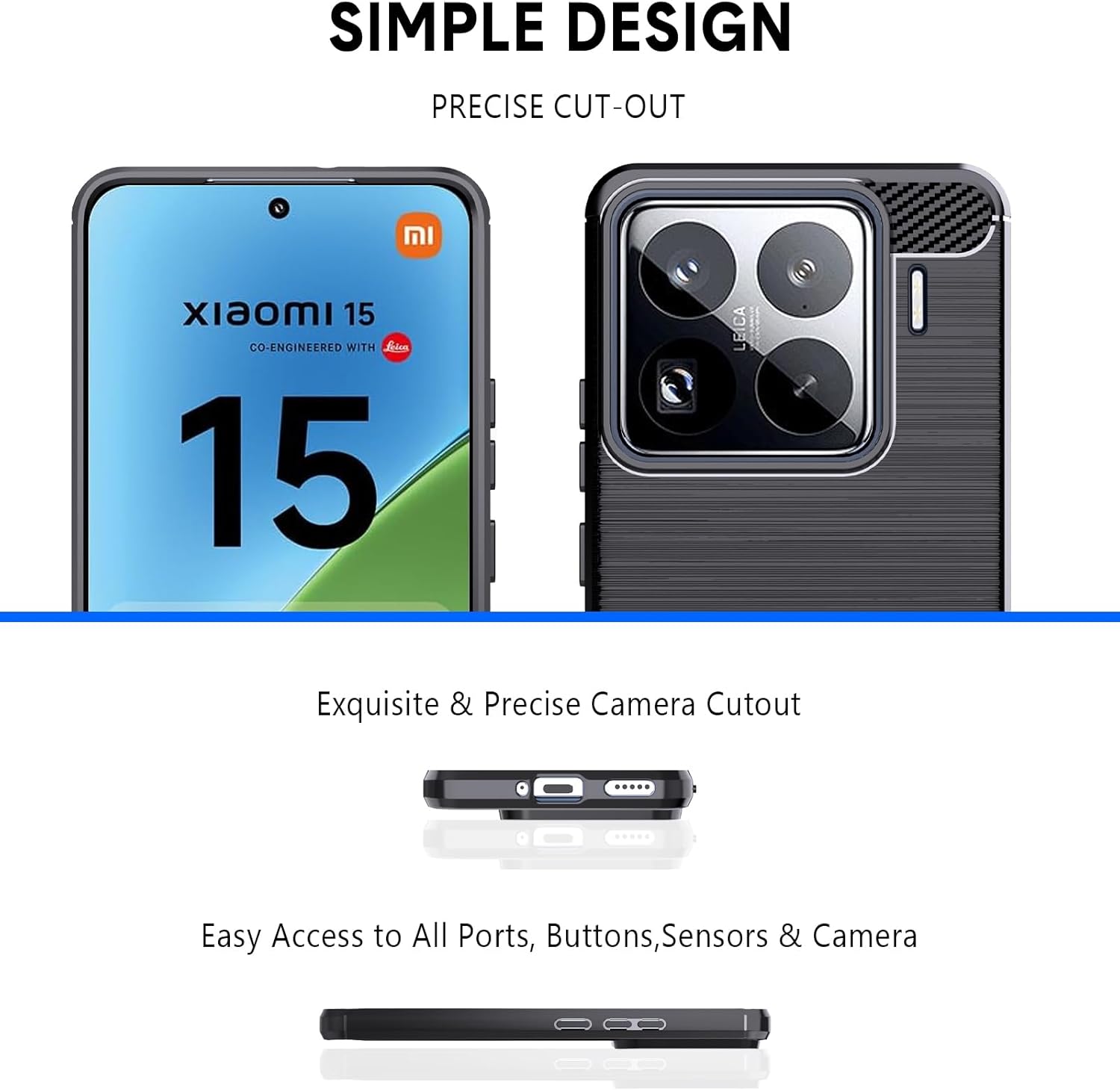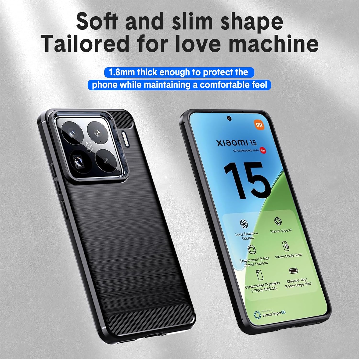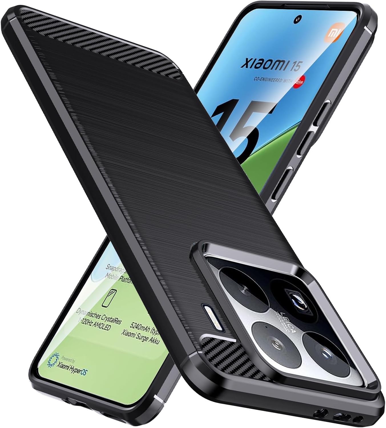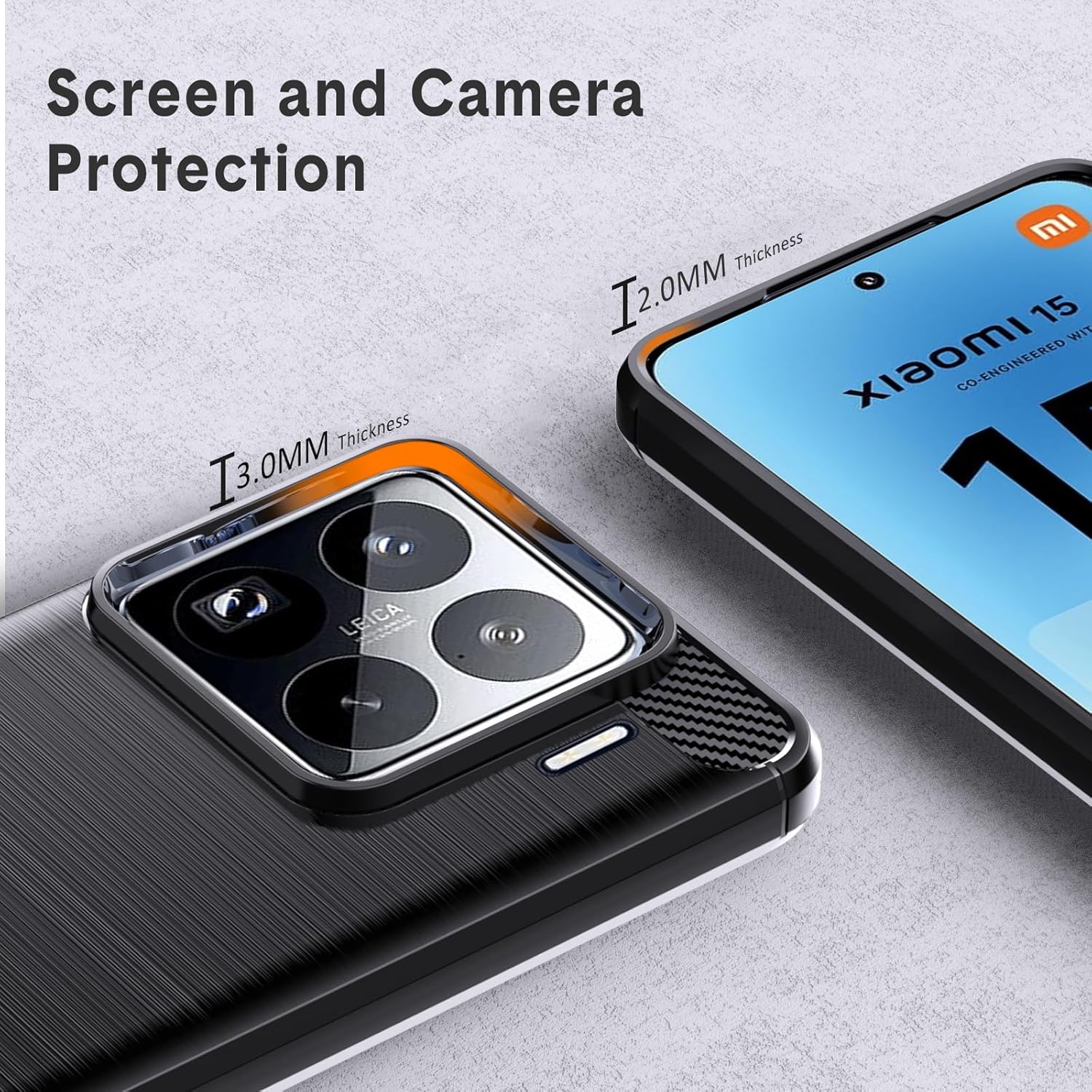【Conception confortable et simple】 Casiaomi MI 15 5G fabriqué à partir de matériau TPU doux et de surface brossée ajoutant une texture de fibre de carbone, aide à réduire les empreintes digitales ou à graisser. Augmente également l’adhérence et empêche votre téléphone de sortir de votre main.