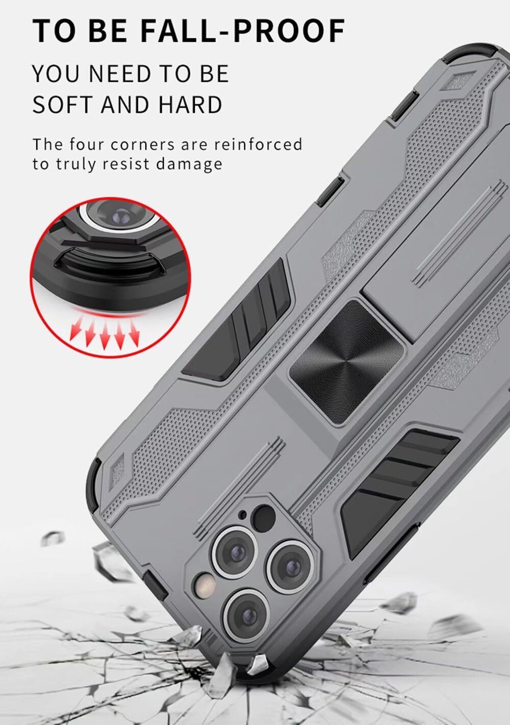 【MATÉRIAUX DE GRADE MILITAIRE】 Test de chute militaire. La double couche offre une protection robuste à 360 degrés dans tout le corps. Polycarbonate dur (PC) + matériaux hybrides TPU fournit une texture solide.