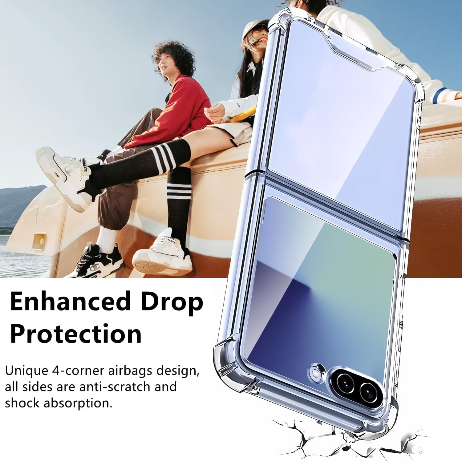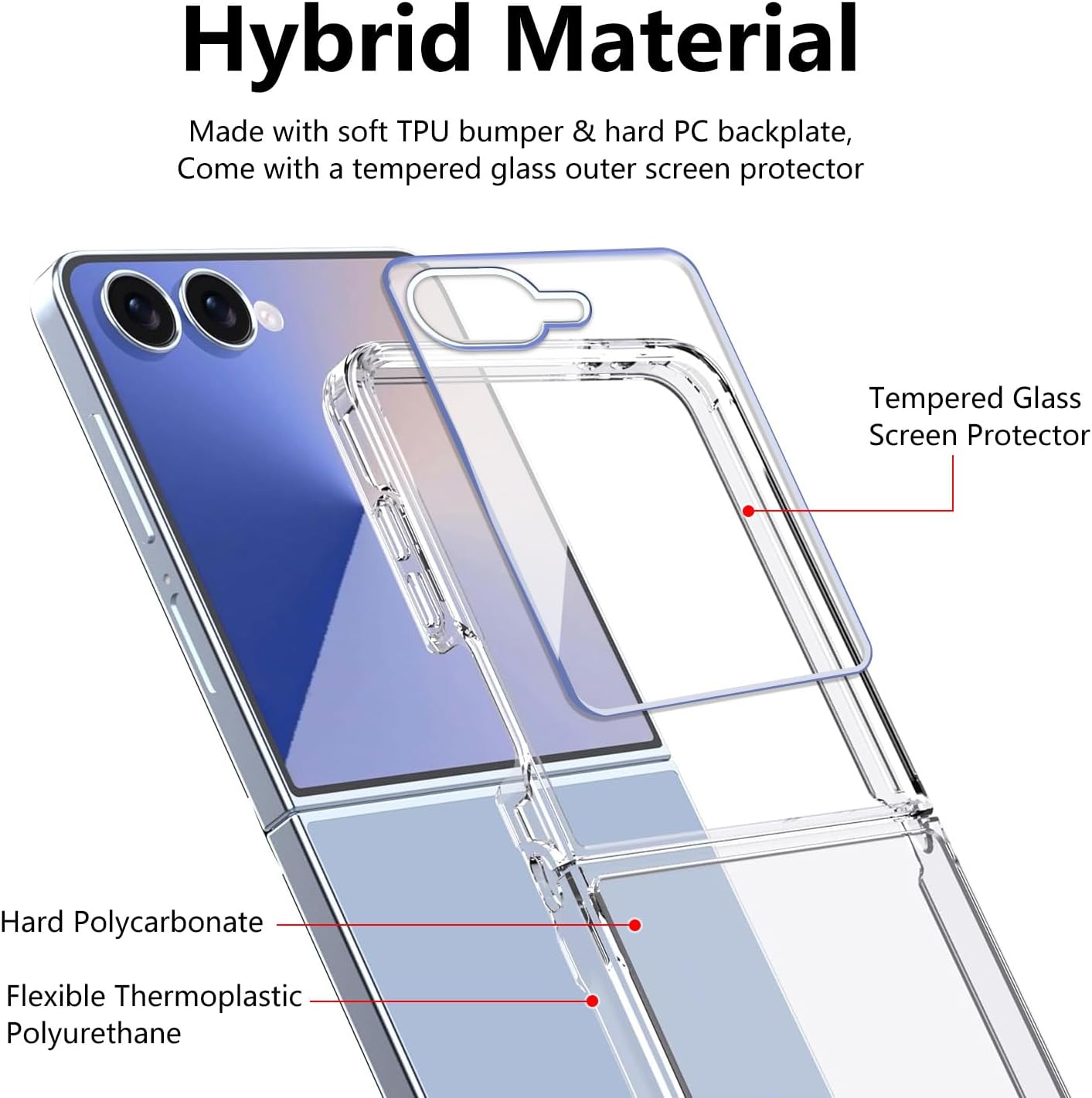 Matériau hybride: Case en cristal transparent pour Samsung Z Flip 7 5G avec le dos PC et le côté TPU. Ce matériau a une bonne dureté et une bonne flexibilité, anti-jaune, résistant aux rayures, ne se déforme pas.