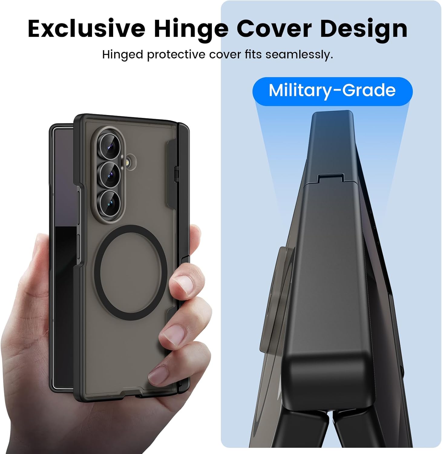 Protection de charnière Samsung Z Fold 7 Le boîtier est en matériau PC de haute qualité avec une conception de charnière semi-automatique qui empêche la poussière et les objets étrangers d’entrer, réduit l’usure, assure une ouverture et une fermeture lisses du téléphone et prolonge sa durée de vie.