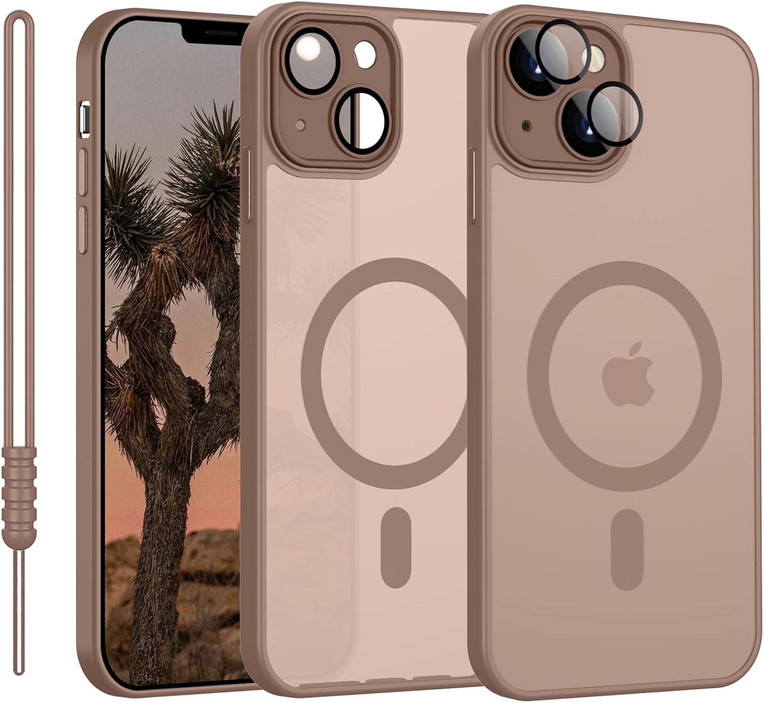 iphone 13 - YUANDMI Coque magnétique pour iPhone 13 compatible avec MagSafe, coque pour iPhone 13 translucide mate ultra fine en silicone antidérapant résistant aux rayures Marron