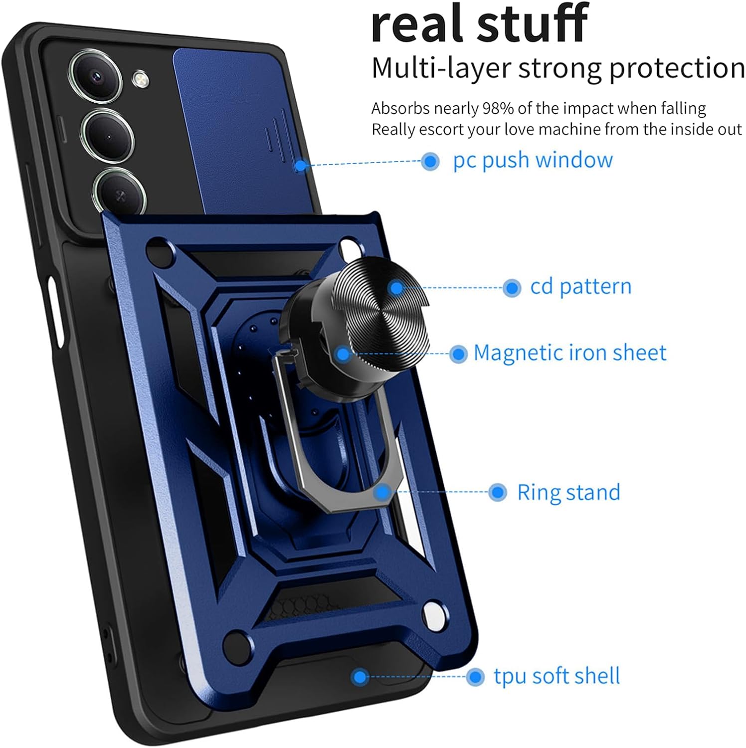 【Matériau à double couche】 La structure à double couche durable est faite de TPU flexible et de PC dur, qui est solide et durable, protège le téléphone des rayures, des bosses et des gouttes, et a des fonctions anti-glissement et anti-dépôt. Le couvercle de caméra coulissante unique protège l’objectif des rayures, des bosses, des abrasions et des bosses.