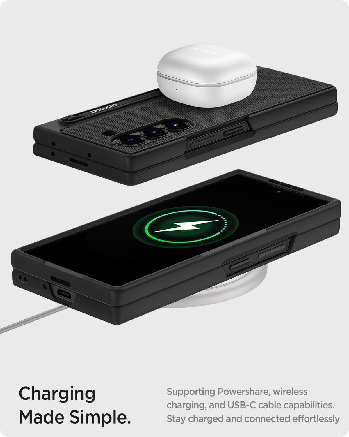 (Compatible de charge sans fil) Cette conception sans rapprochement de la poche Z pli 7 permet une expérience de pliage plus mince, avec une sensation de légèreté totale, et vous pouvez charger sans fil sans avoir à retirer le boîtier du téléphone