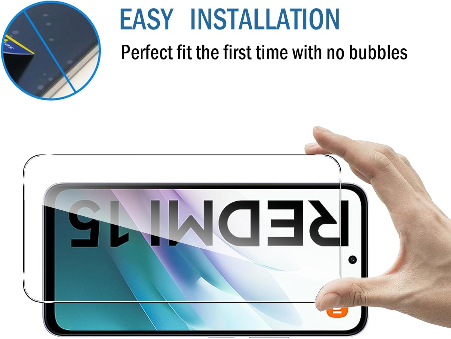 【Remarque spéciale】 En raison du bord arrondi de Xiaomi Redmi 15 5G, notre protecteur d’écran Xiaomi Redmi 15 5G est légèrement plus petit que l’écran, il permet à votre téléphone d’adapter la plupart des étuis de téléphone sur le marché et empêche les bulles et les décoller sur les bords. De plus, cela vous aidera à rendre votre installation super facile, une fois installée, l’air sera automatiquement adsorbé, sans produire de halo blanc, pas d’adhésif ou de bulles