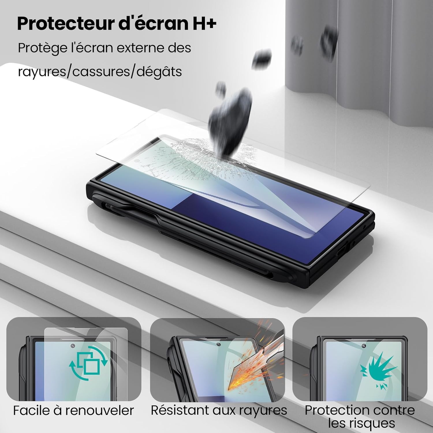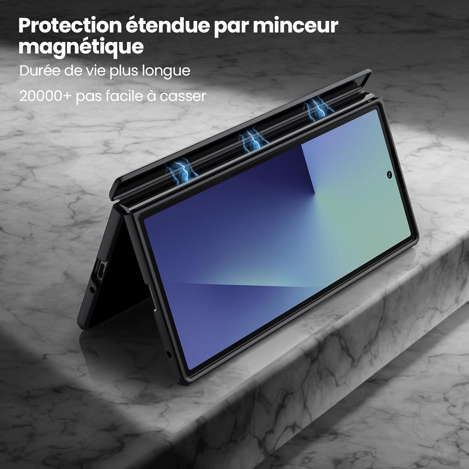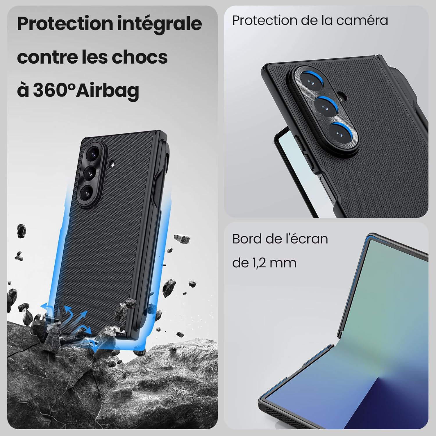 【Conçu pour Galaxy Z Fold 7】 Conçu spécifiquement pour Samsung Galaxy Z Fold 7 (2025), ce cas mince et ergonomique offre une excellente adhérence. Les coins sont équipés de coussins d’air et le cadre avant renforcé, combiné avec un Panzerglas 9H, offre une protection complète à 360 ° pour votre smartphone pliable