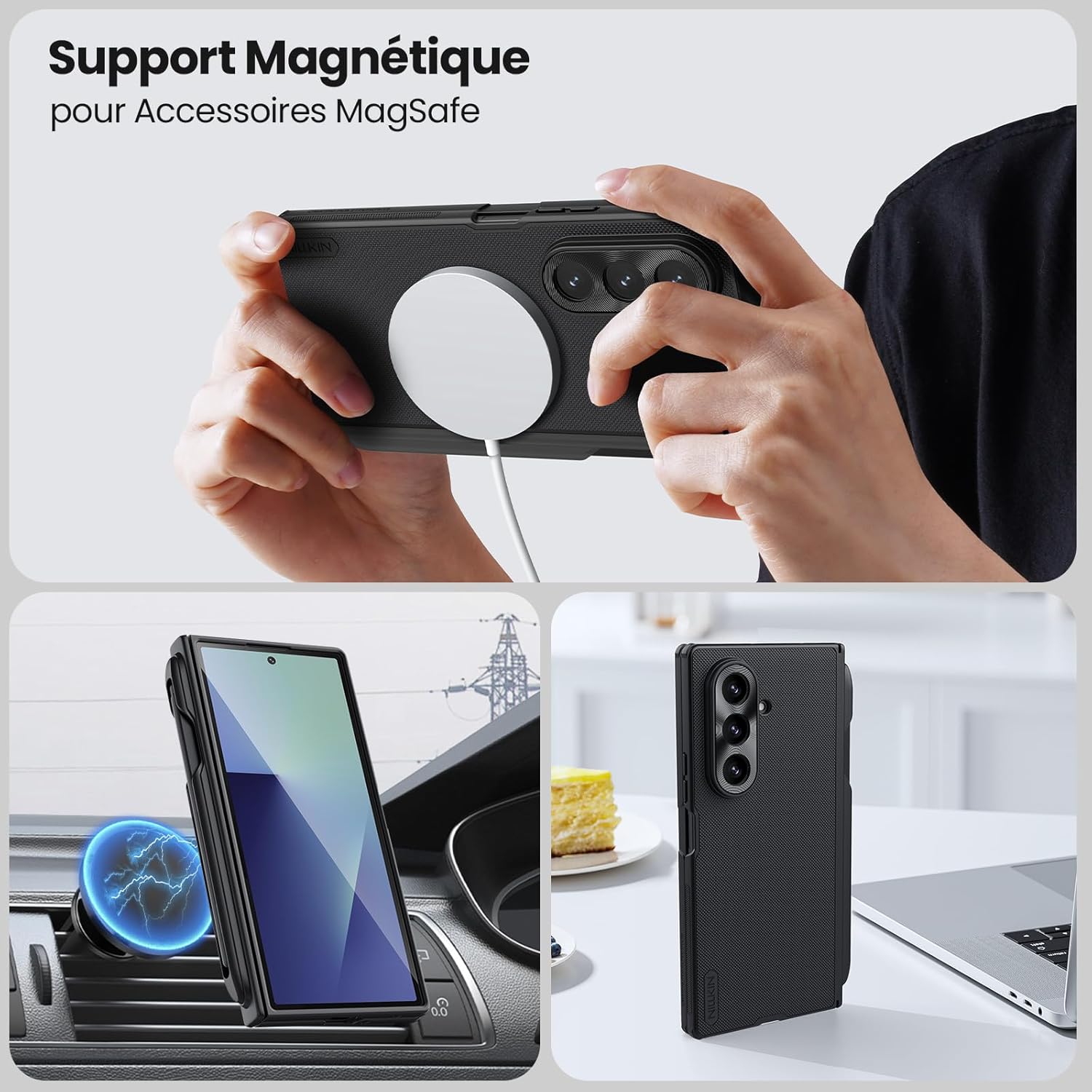 Nillkin Samsung Galaxy Z Fold 7 (2025), noir, Magsafe compatible, avec S Pen | Étui mince anti-rayures avec charnière magnétique et protection d’écran, conception minimaliste des affaires