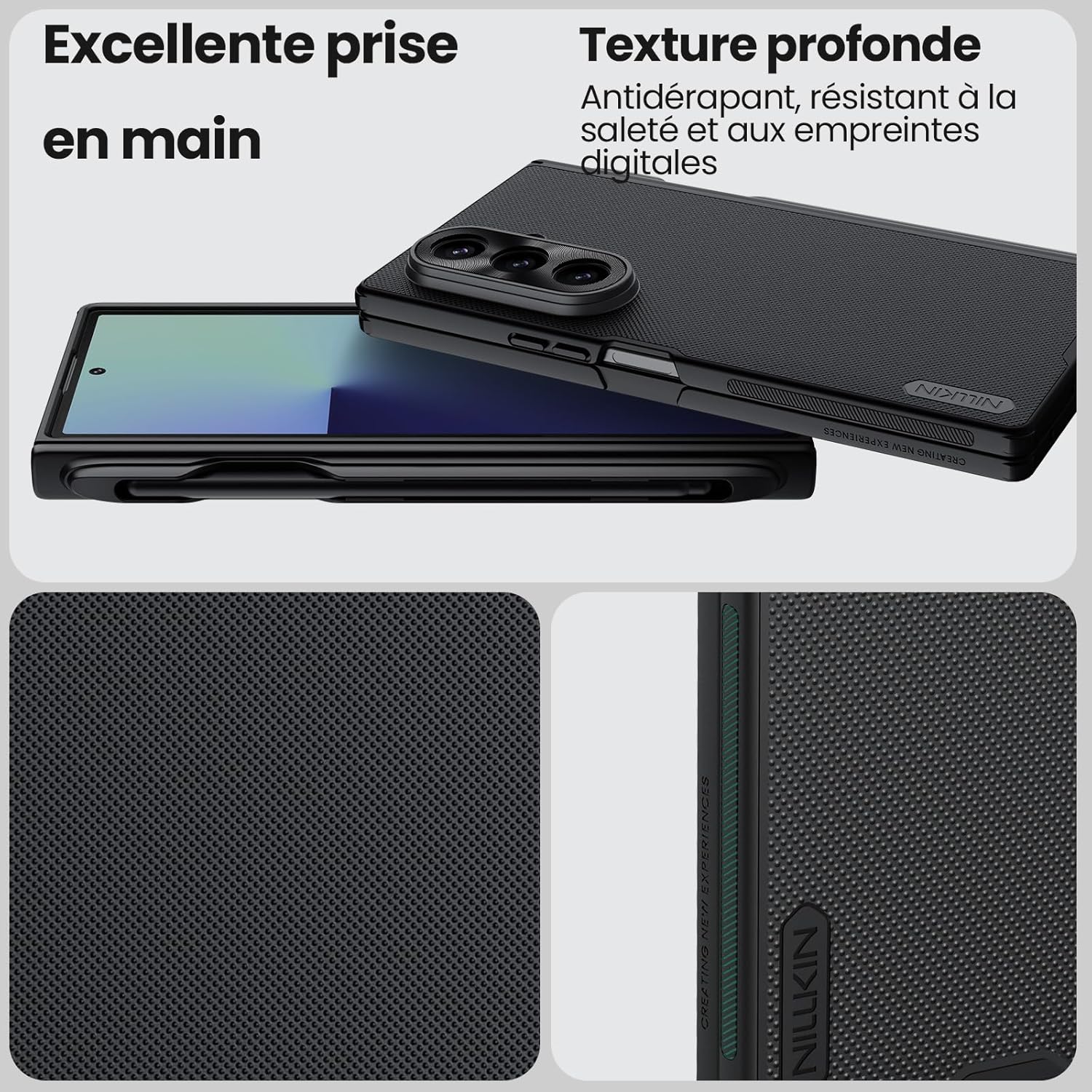 Le cas Nillkin Galaxy Z Fold 7 (2025) offre 360 protection corporelle complète pour votre smartphone pliable. Avec un cadre avant renforcé, des coins absorbant les chocs et un film protecteur Panzerglas 9H, votre appareil est parfaitement protégé des bosses et des rayures. Grâce à l’anneau magnétique N52, ce boîtier compatible MAGSAFE prend en charge la charge sans fil et les accessoires magnétiques comme les supports de voiture ou de bureau. Le porte-stylo S avec charnière magnétique sécurise votre stylet et protège la zone de pliage du téléphone. La finition mate et sans glissement réduit les empreintes digitales, résiste à la transpiration et garantit une poignée confortable. Ce boîtier mince avec une conception d’entreprise combine l’élégance et les fonctionnalités, idéales pour un usage quotidien ou en voyage.