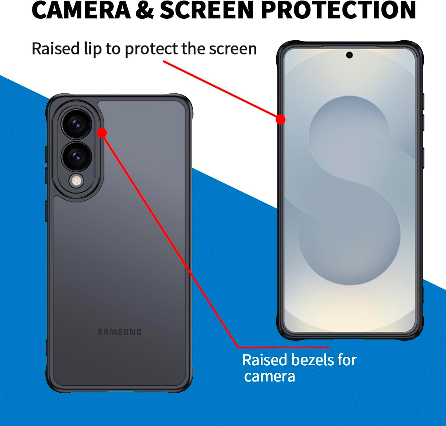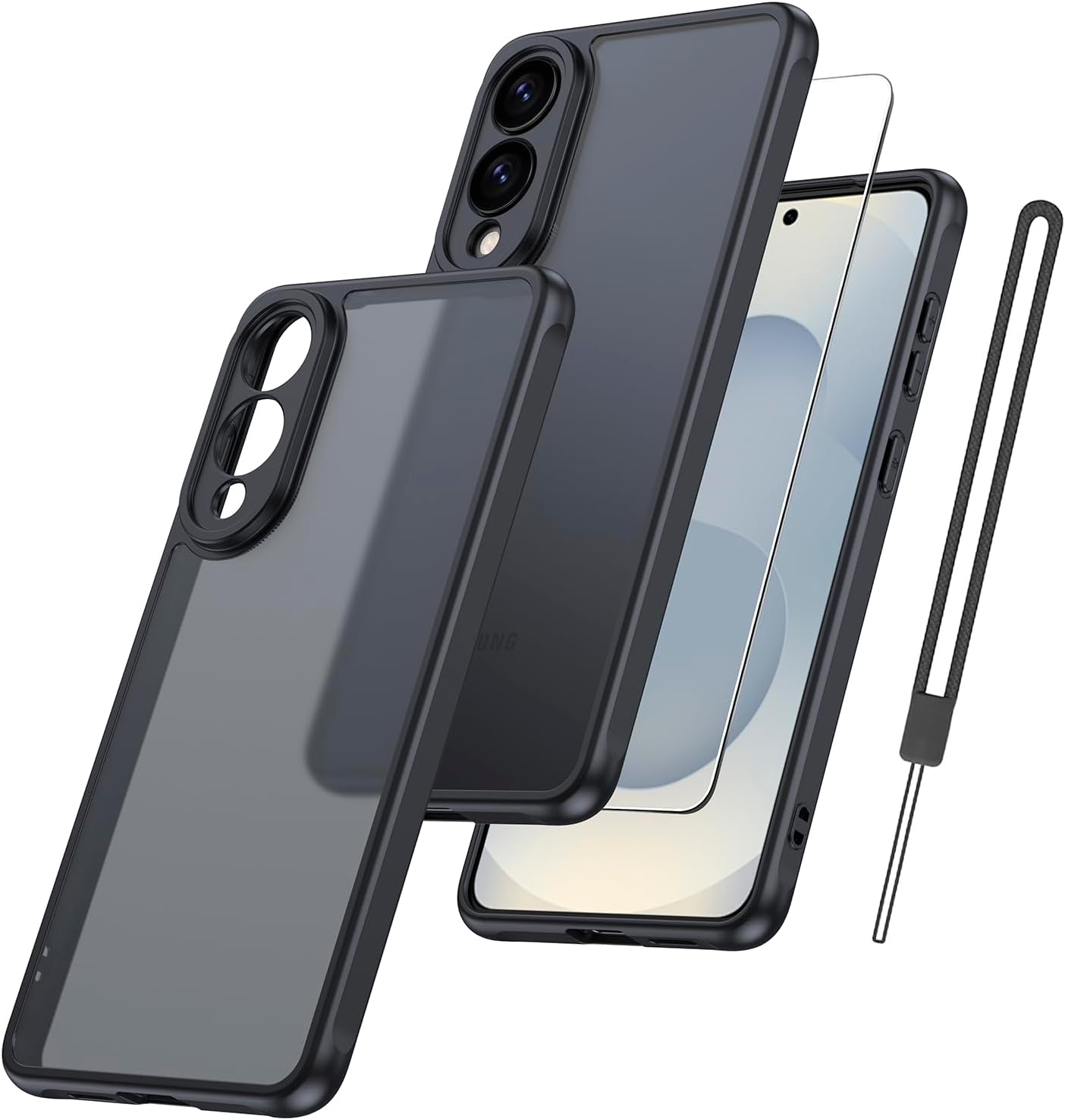 Samsung s25 Edge – Anloes Coque pour Samsung Galaxy S25 Edge 5G avec Verre Trempé, Coque de Protection Militaire Antichoc Translucide Mat Back Cover Case (Noir)
