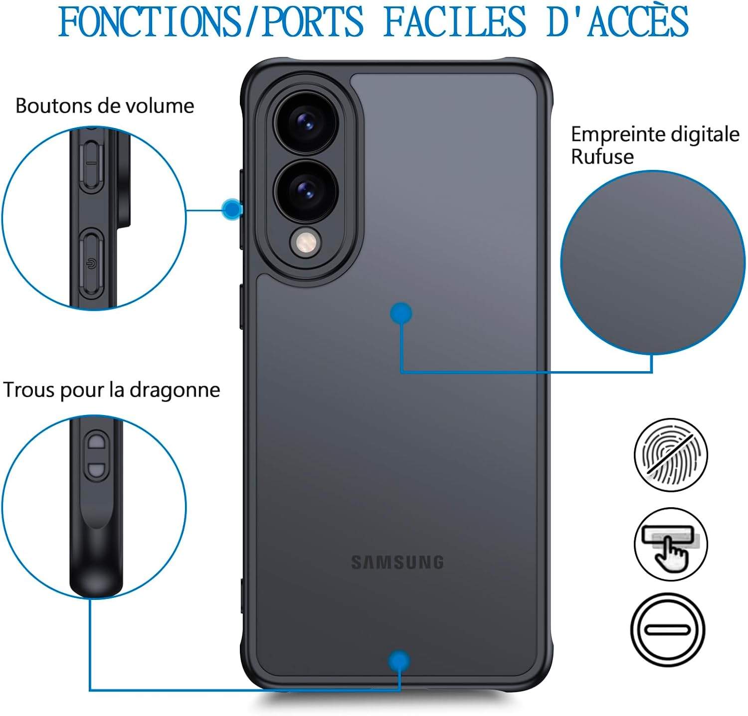 Dos mat translucide : cette coque pour Samsung Galaxy S25 Edge 5G est dotée d’un cadre en TPU et d’un dos givré translucide qui met en valeur le design original et l’esthétique du téléphone, tandis que la texture givrée et huilée est résistante aux empreintes digitales, aux rayures et antidérapante.
