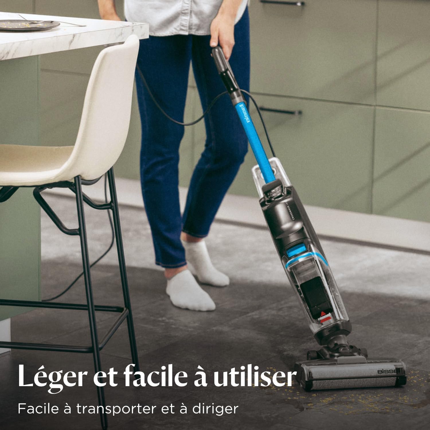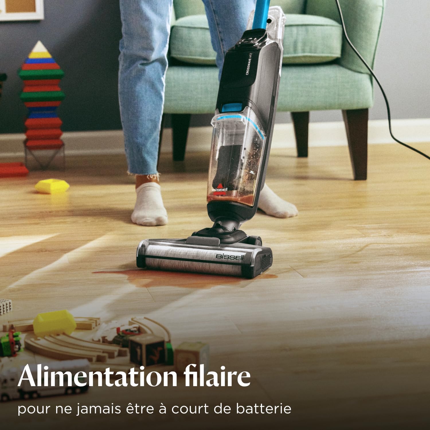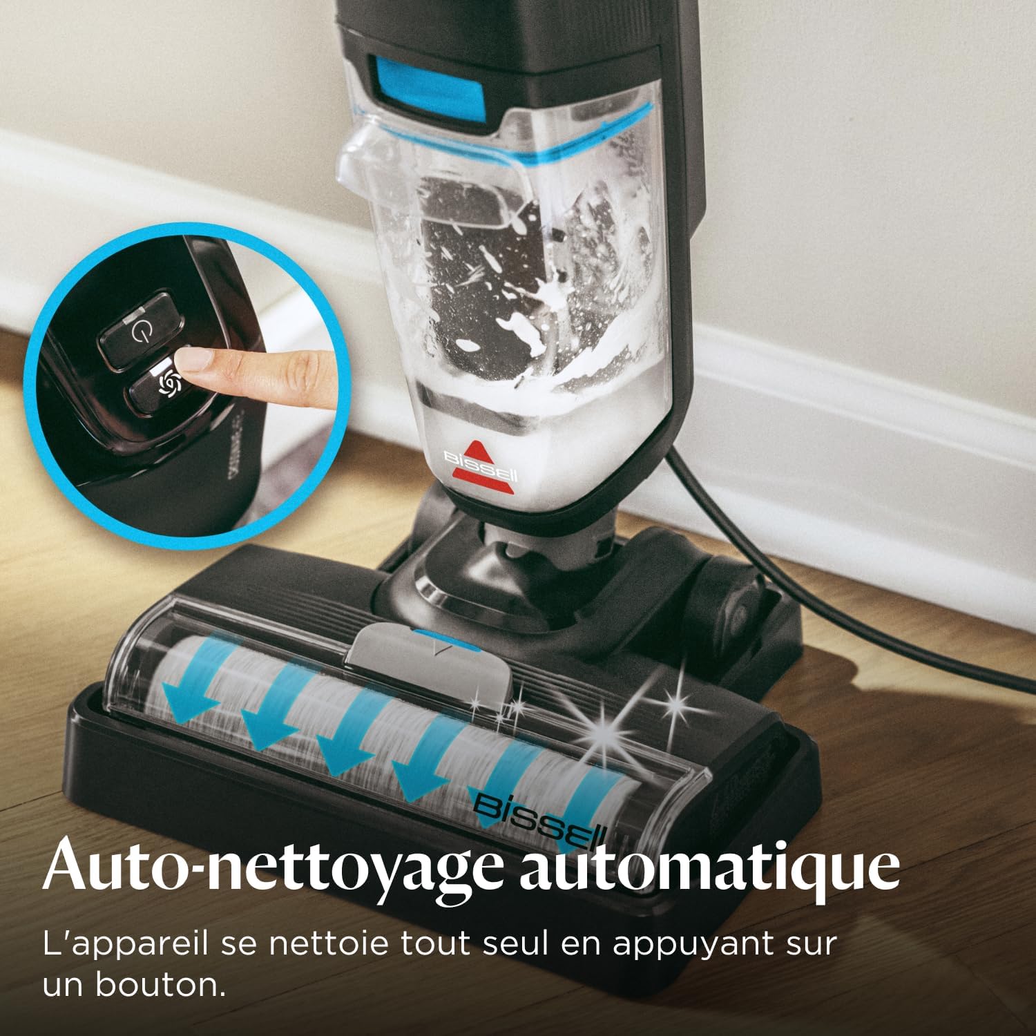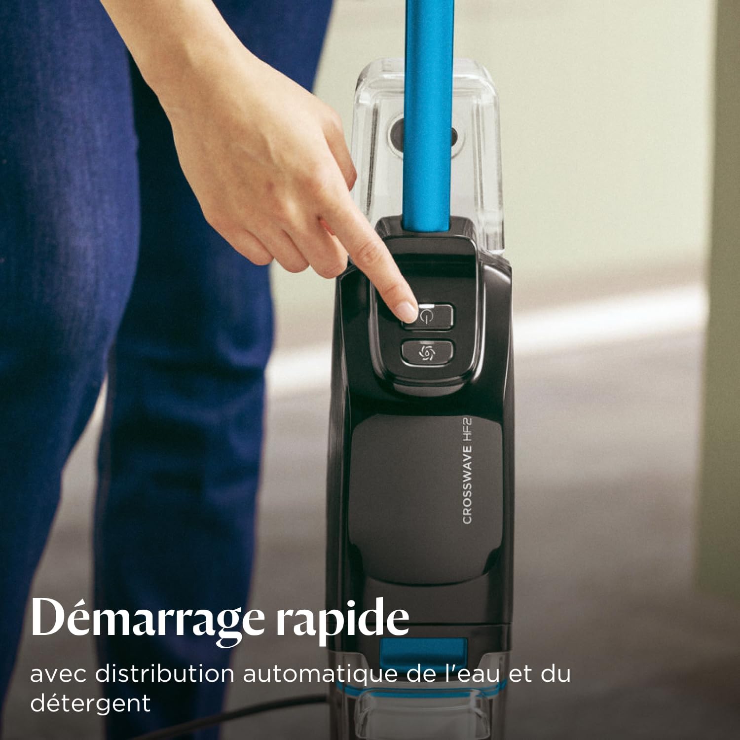 DÉMARRAGE RAPIDE AVEC ALIMENTATION AUTOMATIQUE EN EAU : Allumez et c’est parti ! Le BISSELL CrossWave HF2 aspire et lave vos sols durs en un seul passage pour un nettoyage rapide et en profondeur