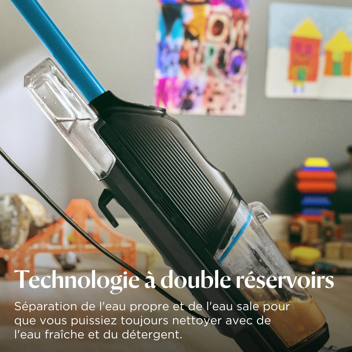 TECHNOLOGIE À DEUX RÉSERVOIRS : Sépare l’eau propre de l’eau sale, garantissant un nettoyage toujours avec de l’eau propre et une solution de nettoyage. Fini la saleté due à l’eau sale