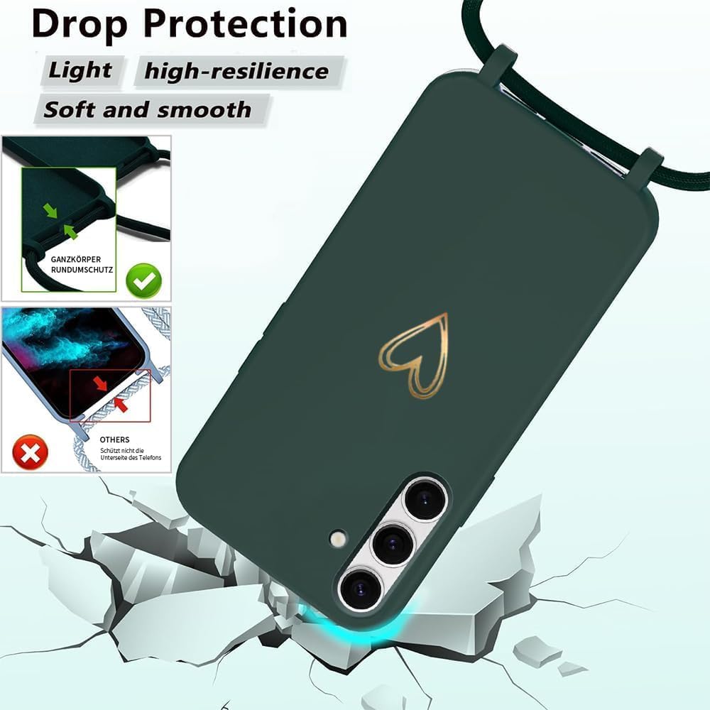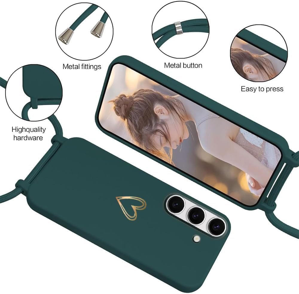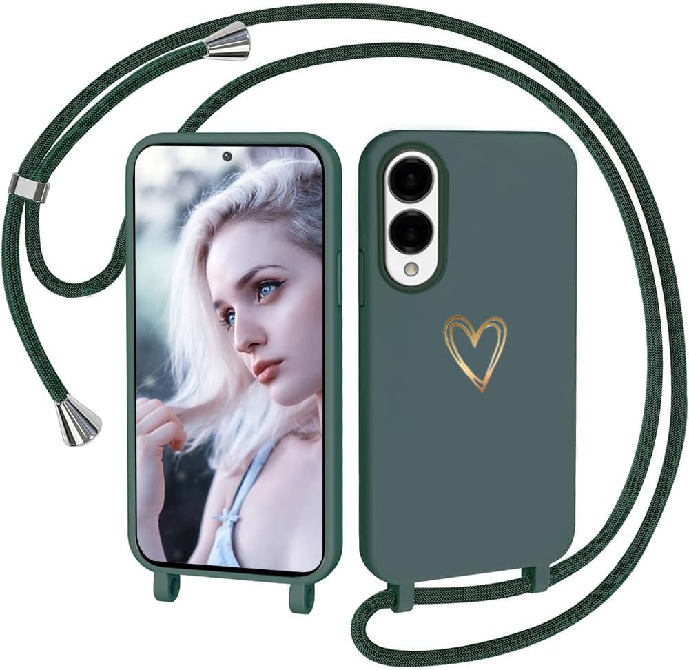 Samsung s25 Edge – CaseLover Coque avec cordon pour Samsung Galaxy S25 Edge, cordon en silicone pour téléphone portable avec motif cœur avec collier réglable, chaîne de téléphone, lanière pour Samsung S25 Edge, vert