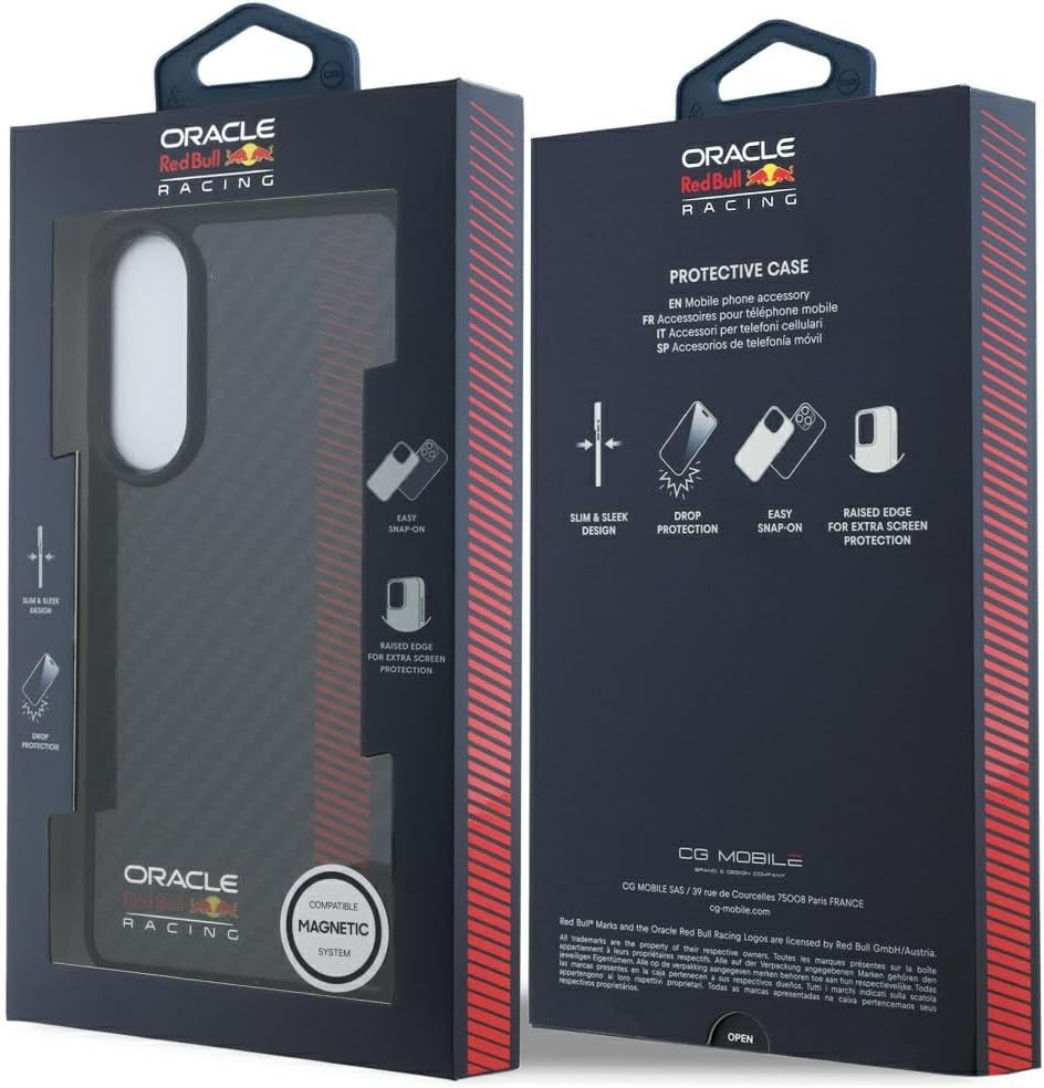 L’étui exclusif Red Bull Real Carbon Fiber Powerbar compatible avec la collection MagSafe est un étui de qualité exceptionnelle, recommandé par l’une des équipes de course et ingénieurs les plus célèbres au monde. La coque Powerbar en fibre de carbone véritable a été conçue avec un design fin et léger qui minimise le poids du smartphone tout en offrant un look élégant et une manipulation confortable. Les lignes rouges et le fond en fibre de carbone soulignent le caractère dynamique du boîtier. Le logo Red Bull, symbole de haute qualité, prouve l’authenticité du produit. Cet étui de cette collection se caractérise par une construction flexible qui augmente la résistance aux chutes et aux dommages mécaniques. La coque arrière est fabriquée à partir de matériaux de haute qualité et protège l’arrière de l’appareil des rayures. Les bords légèrement surélevés autour de l’écran et de l’objectif de l’appareil photo protègent le smartphone des rayures, tandis que les côtés flexibles et souples permettent une installation rapide et facile. Le boîtier dispose d’un anneau de charge magnétique inductif compatible avec les chargeurs sans fil et permet une charge rapide et facile. Les aimants intégrés s’adaptent parfaitement au smartphone et assurent une connexion solide avec le chargeur et les accessoires.