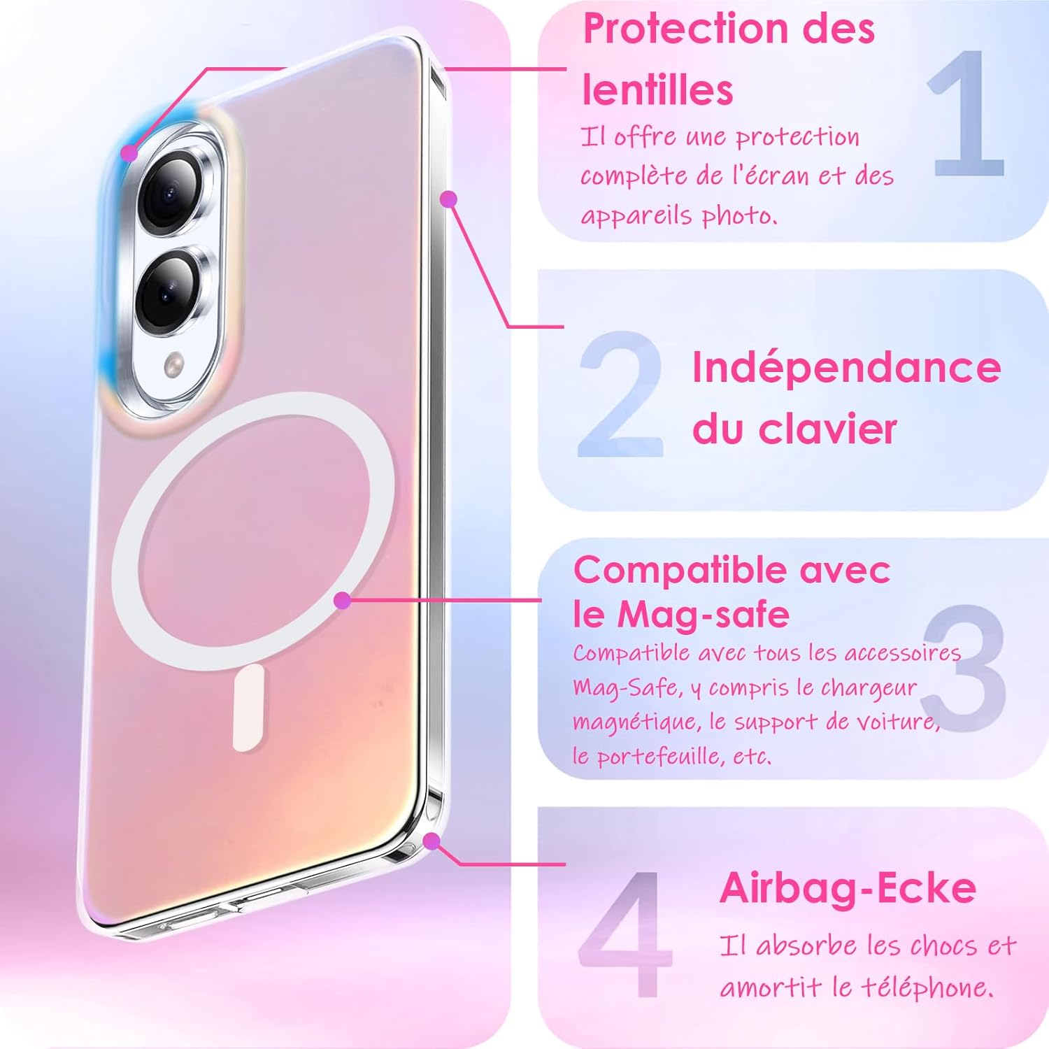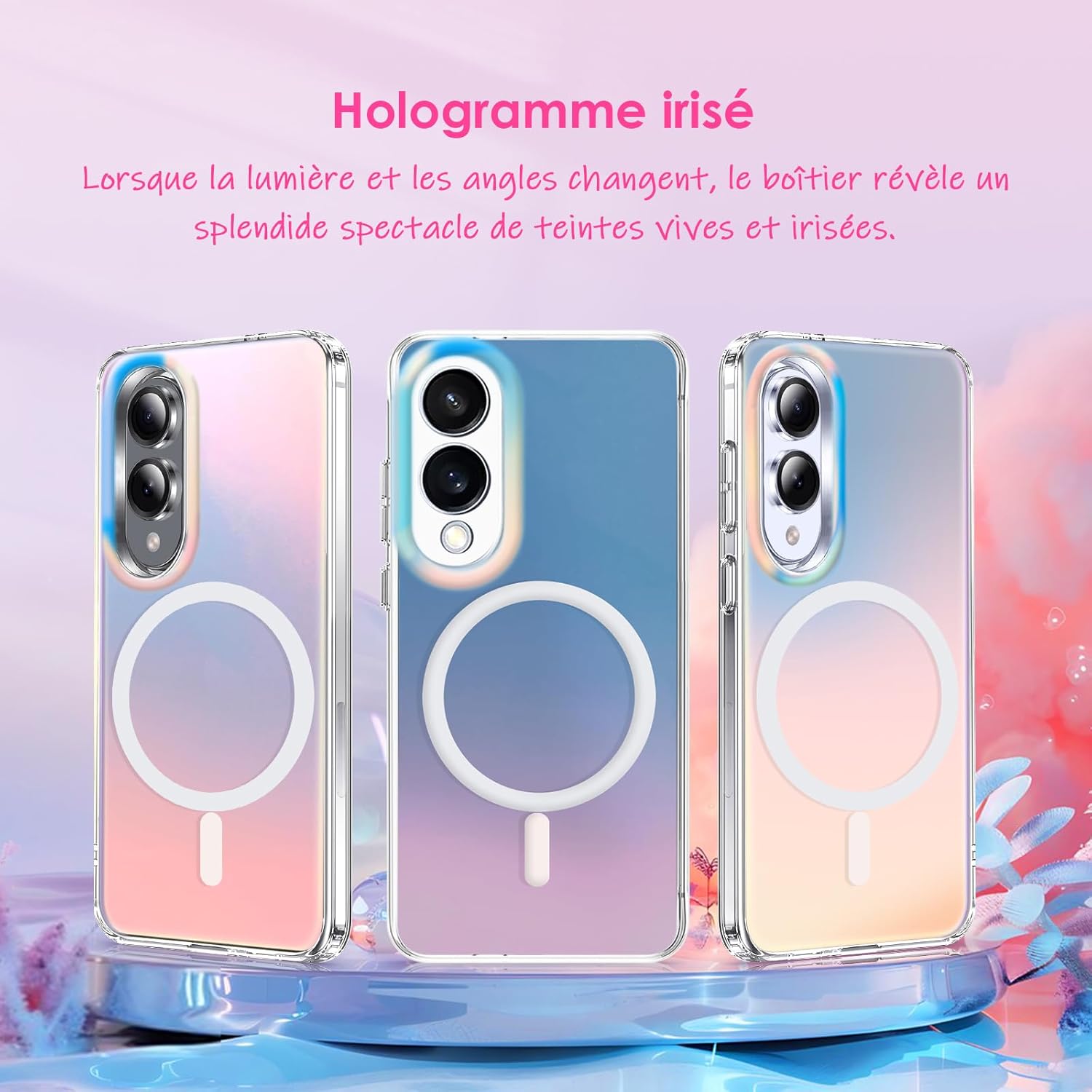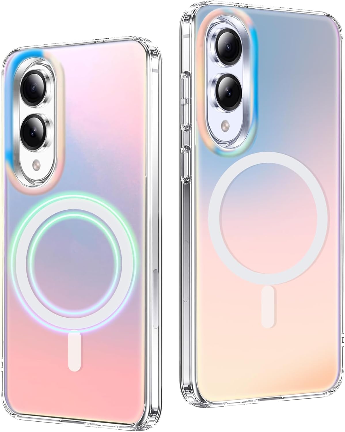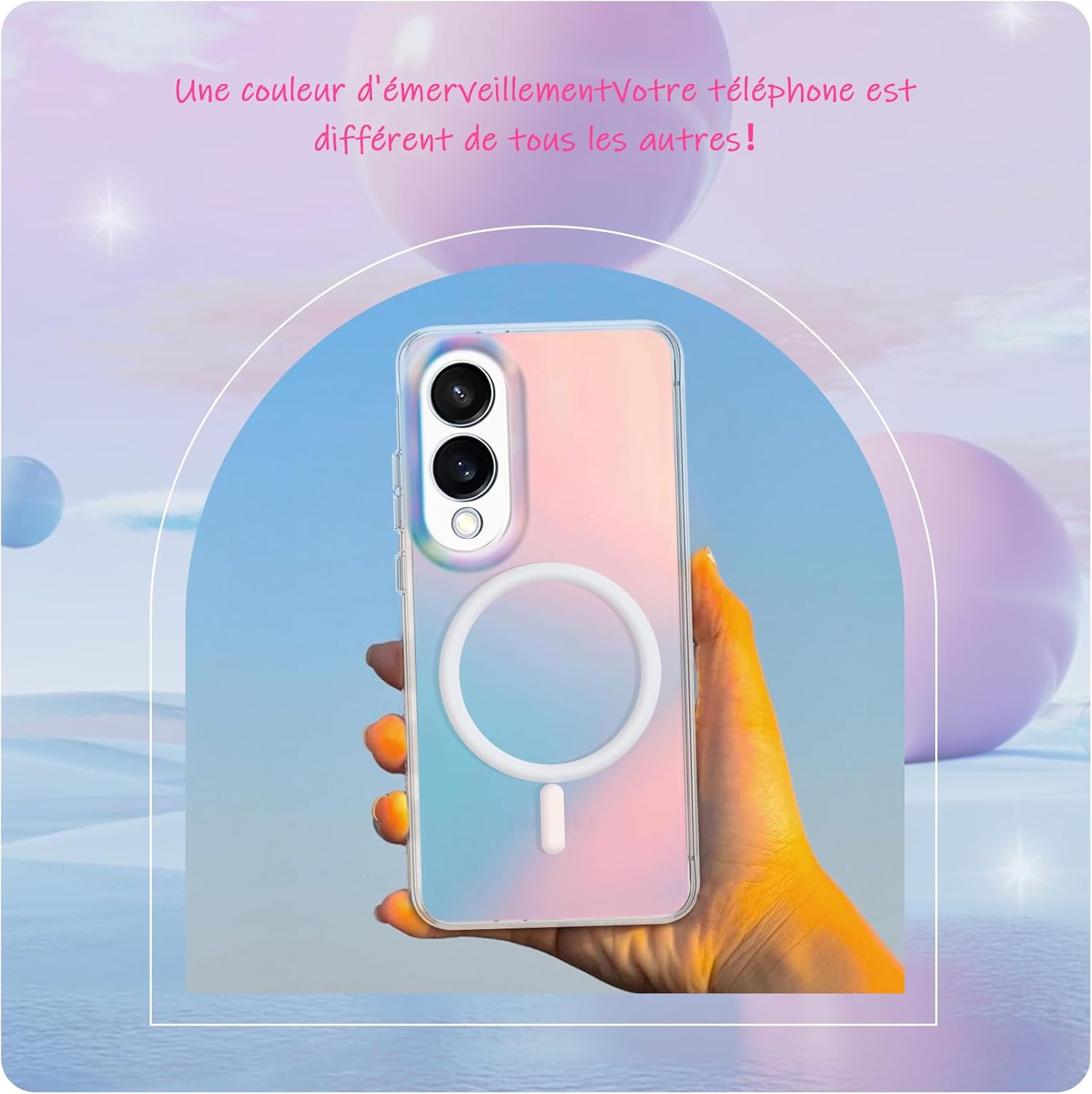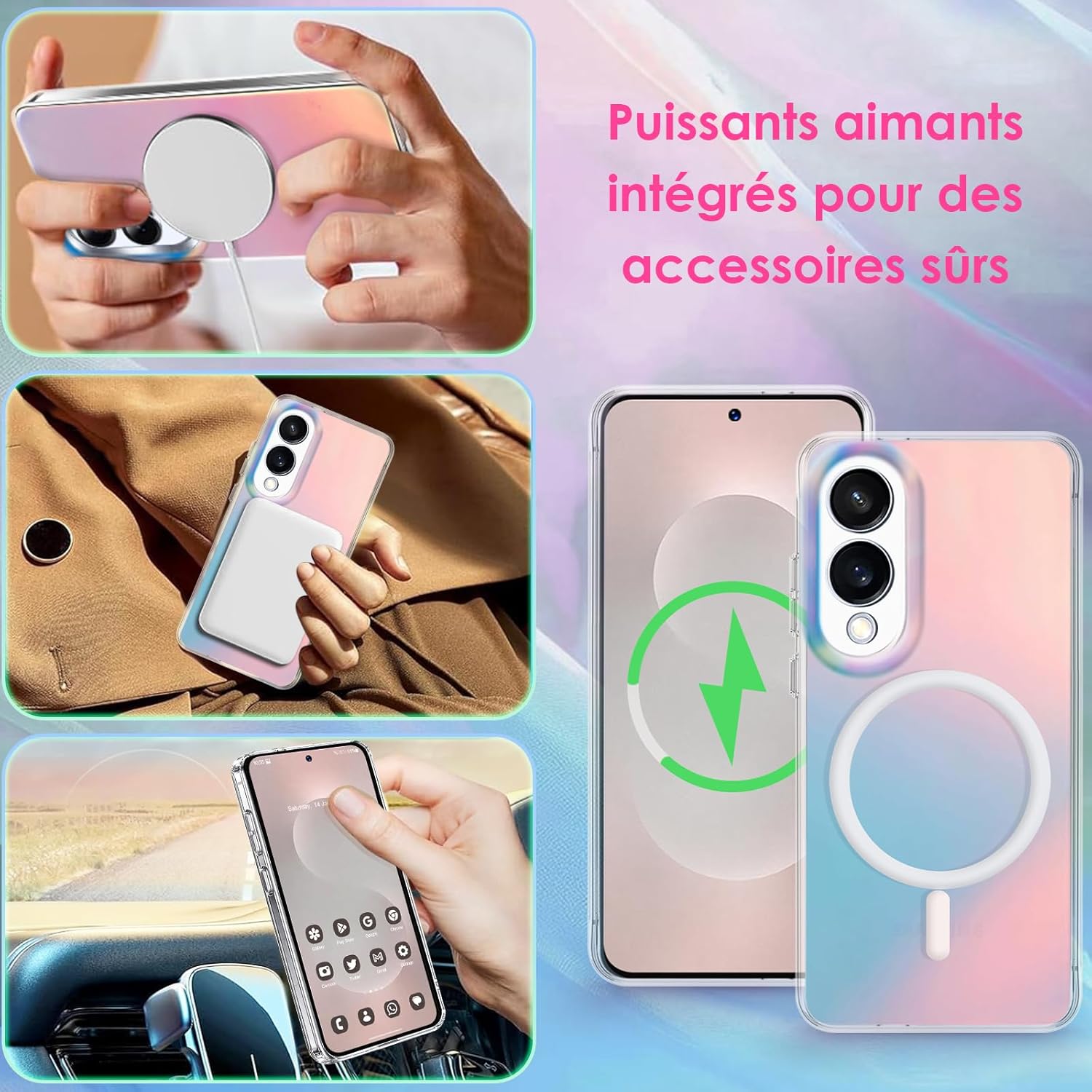 Samsung s25 Edge – Coque pour Samsung Galaxy S24 (aimants intégrés pour Magsafe) holographique irisé résistant aux chocs, translucide mat, coque de protection arrière pour Samsung S24 (Magsafe irisé, S25 Edge)