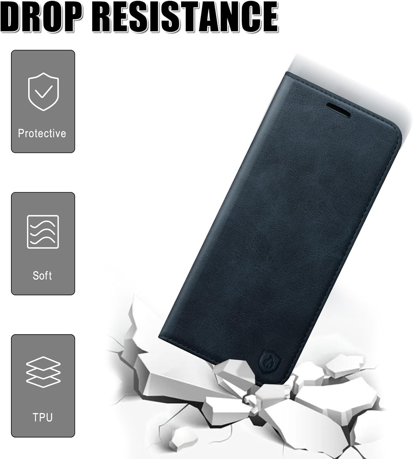 (Cuir PU sélectionné et protection complète) — Cet étui portefeuille est fabriqué à partir de cuir artificiel sélectionné, cet étui portefeuille offre qualité, absorption des chocs, durabilité et résistance pour protéger l’étui. L’étui à rabat peut fournir une protection à 360 degrés, avec des fonctions anti-choc, anti-rayures et anti-chute.