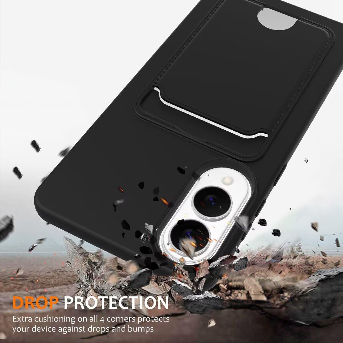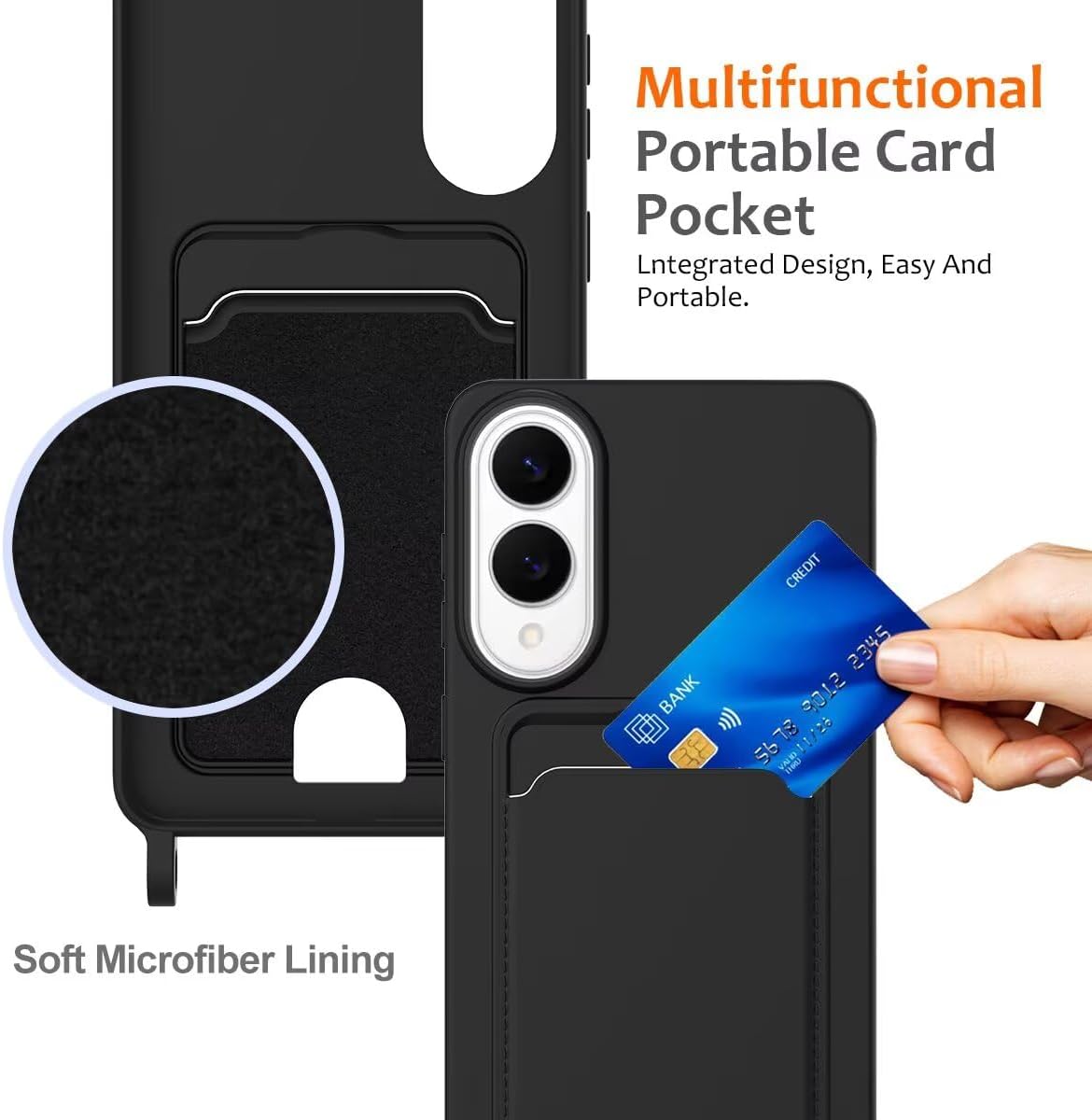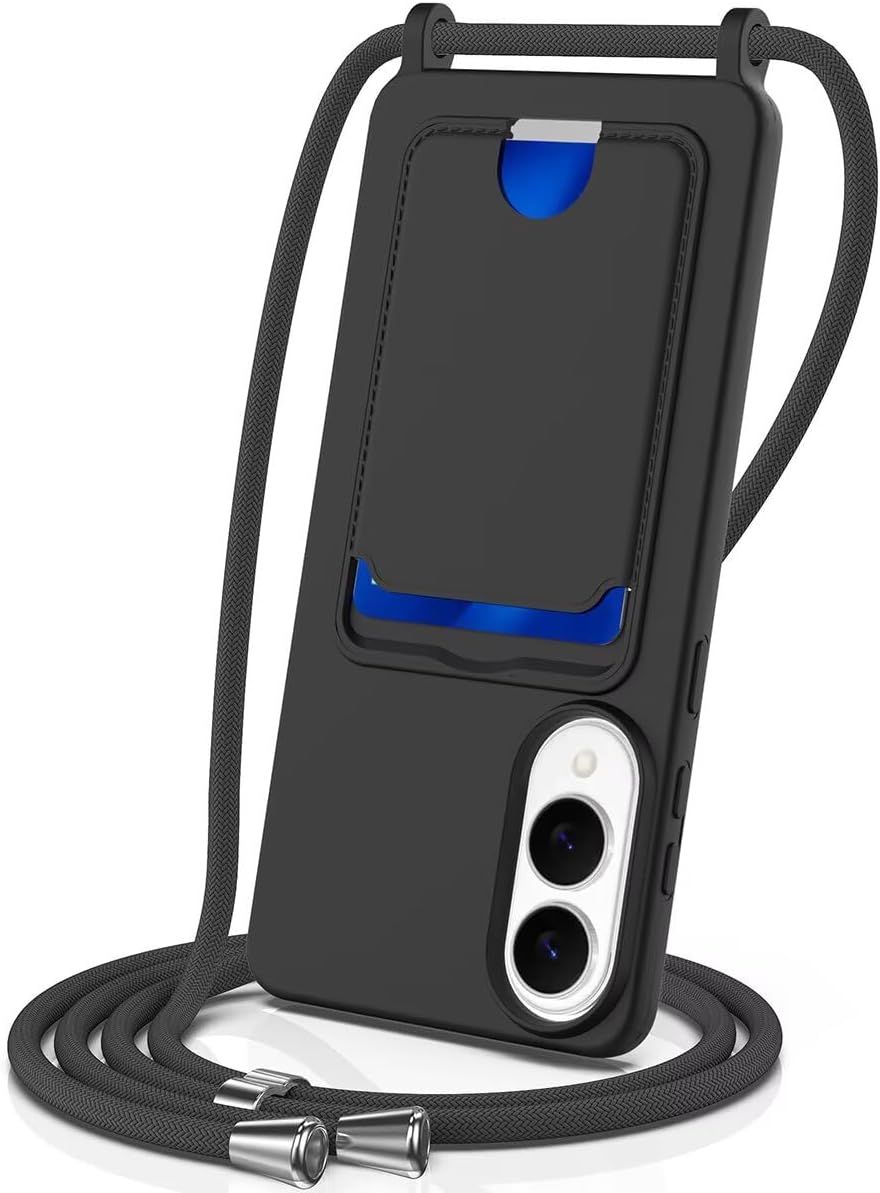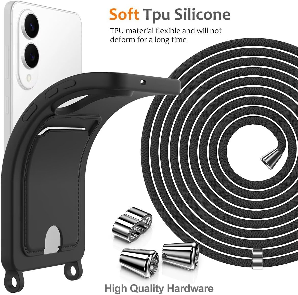 Coque avec cordon pour Samsung Galaxy S25 Edge, collier réglable en silicone souple pour colliers de téléphone portable, protection d’appareil photo, support, porte-cartes – Noir