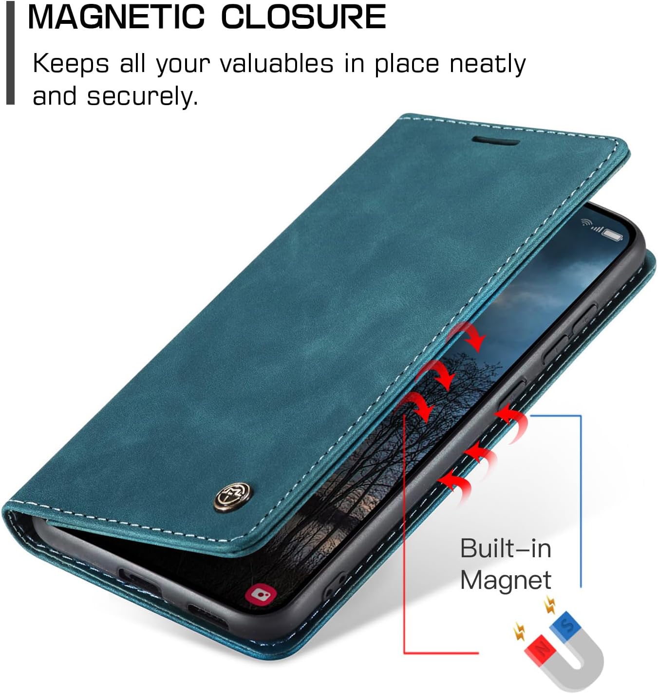 【Qualité】 La housse est en simili-cuir synthétique, offrant une surface au toucher agréable et apaisant. Elle se ferme par une fermeture magnétique, assurant la sécurité de vos effets personnels ainsi qu’une protection complète.