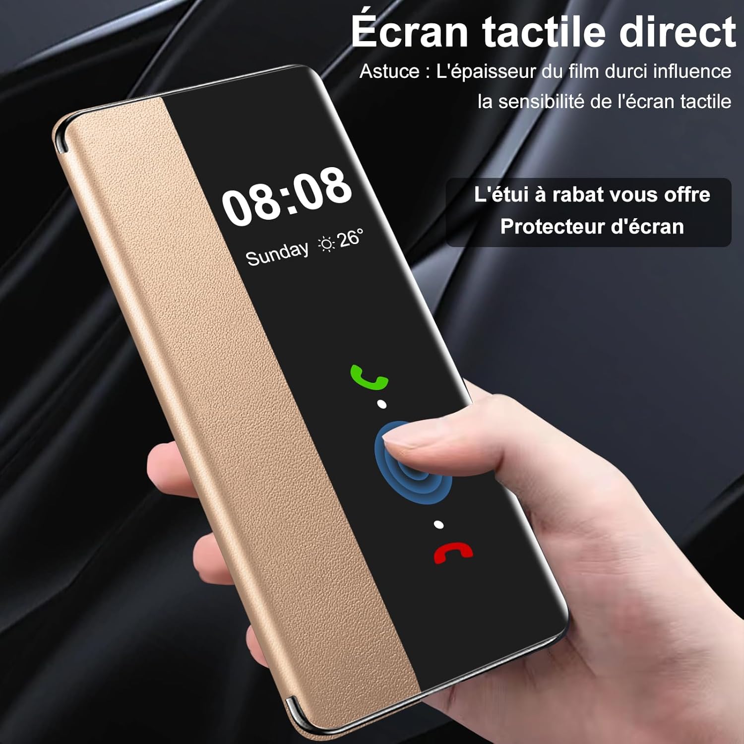 Fenêtre tactile : la coque pour Samsung S25 Edge vous permet d’utiliser l’écran du téléphone directement sans retourner la coque, vous pouvez simplement faire glisser votre doigt pour répondre à un appel entrant. Astuce : Ne placez pas de film durci pour obtenir une réaction de contact plus rapide
