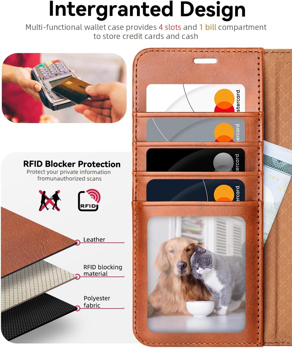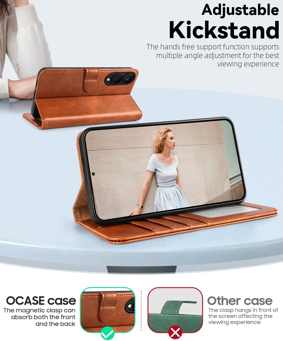Portefeuille grande capacité : libérez vos mains et gagnez en commodité ! L’étui portefeuille OCASE peut accueillir 4 cartes et quelques billets tout en se fermant parfaitement. La fenêtre transparente permet de flasher rapidement et facilement votre pièce d’identité. Vous pouvez également utiliser la coque de téléphone comme béquille pour regarder des vidéos ou des films sous les meilleurs angles pour une expérience visuelle confortable et satisfaisante.