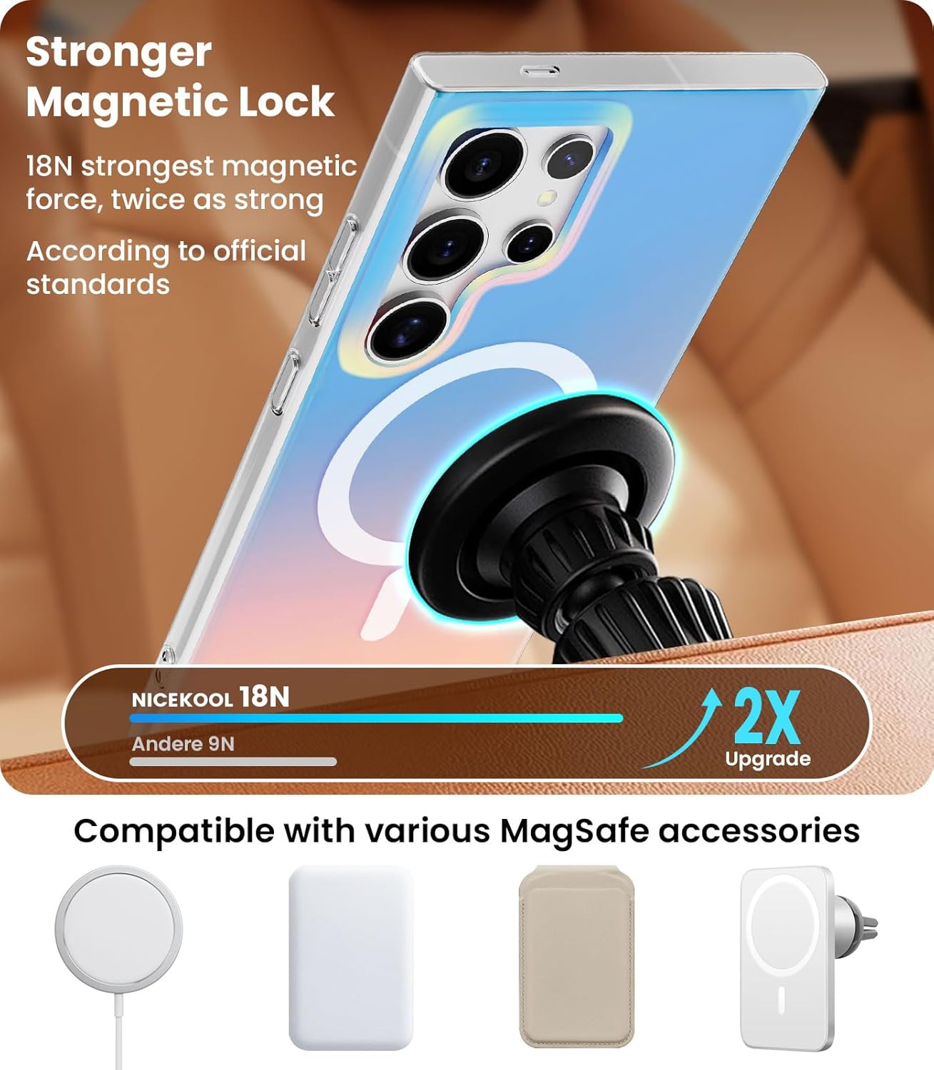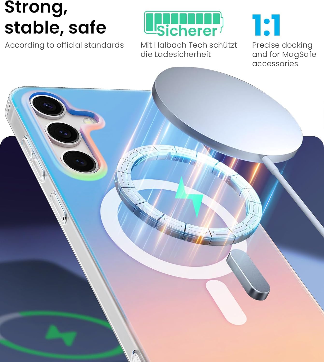 Super magnétique et compatible avec MagSafe : la coque pour Samsung Galaxy S25 est compatible avec Magsafe. L’aimant puissant intégré ne tombe pas facilement, une fois cliqué, ne glisse jamais. Permettre une recharge sans fil plus rapide et plus facile