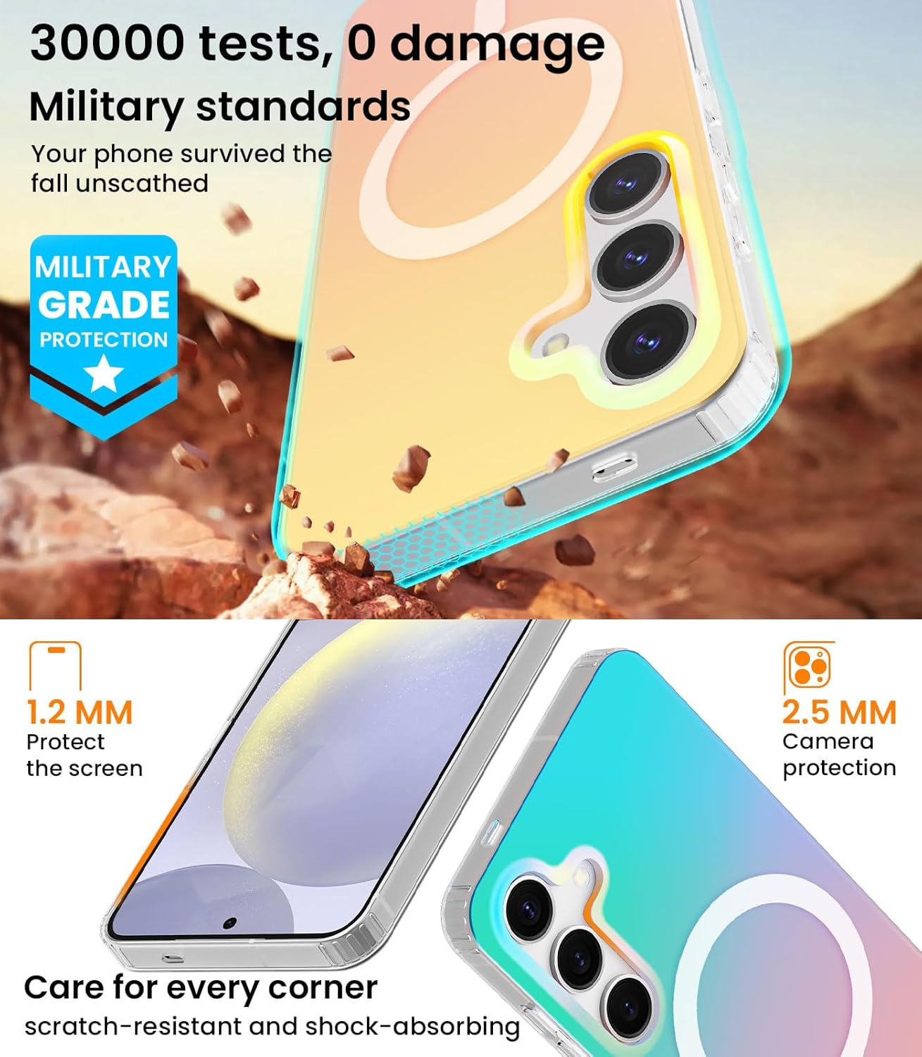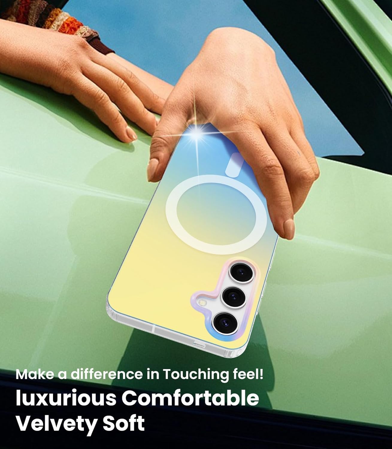 Effet arc-en-ciel : laissez votre téléphone scintiller dans tout le spectre de couleurs, change de couleur avec le mouvement et la lumière, montrant votre vrai style de votre Samsung Galaxy S25 d’une manière époustouflante.