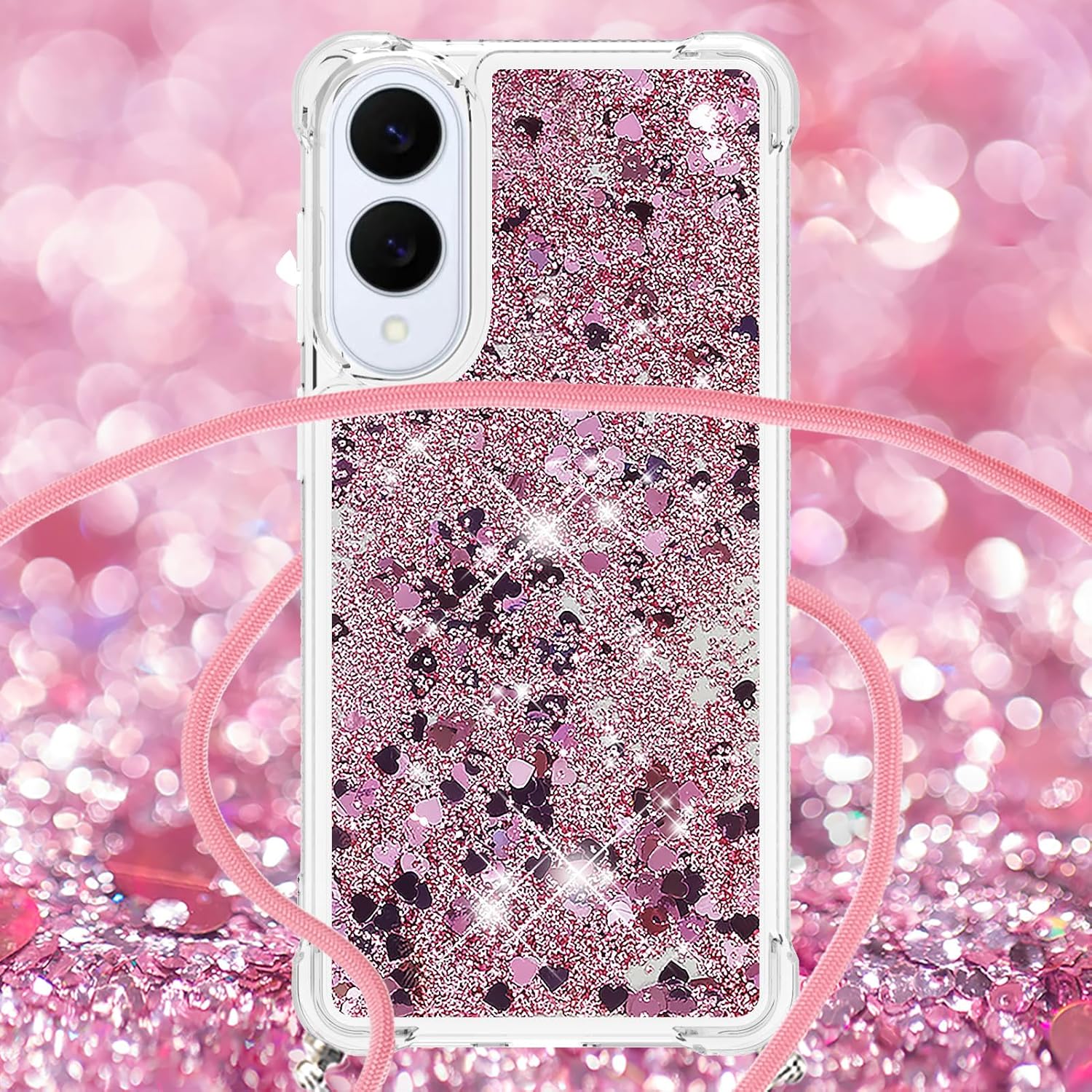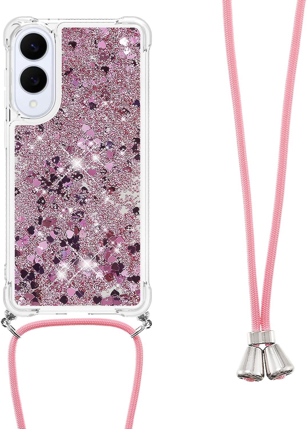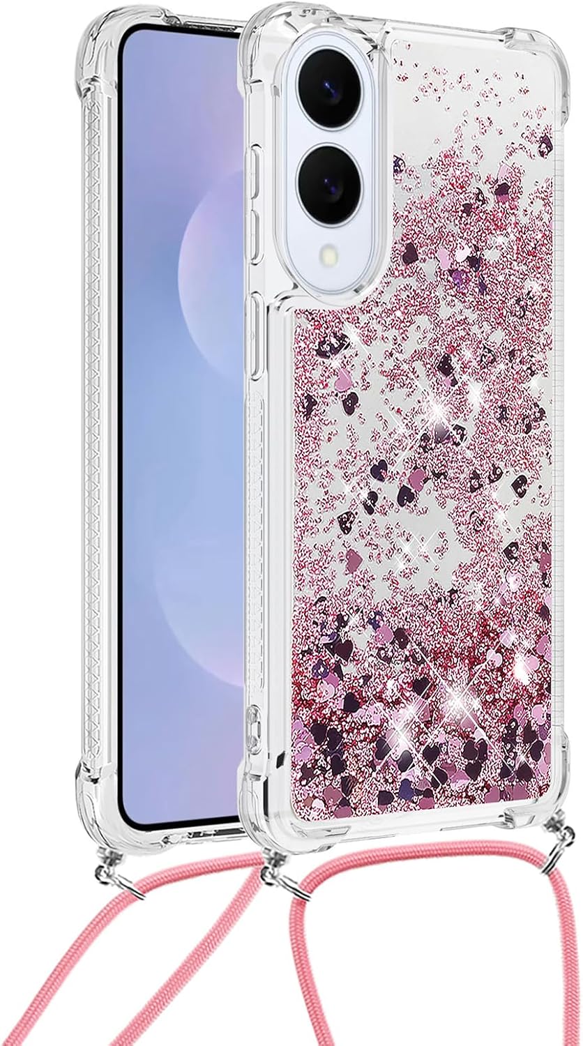 Samsung s25 Edge – Étui Cordon Compatible avec Samsung S25 Edge Silicone Liquide Scintillant Coque Kawaii Résistante aux Chocs avec Collier pour Samsung Galaxy S25 Edge. LP Love Rosegold