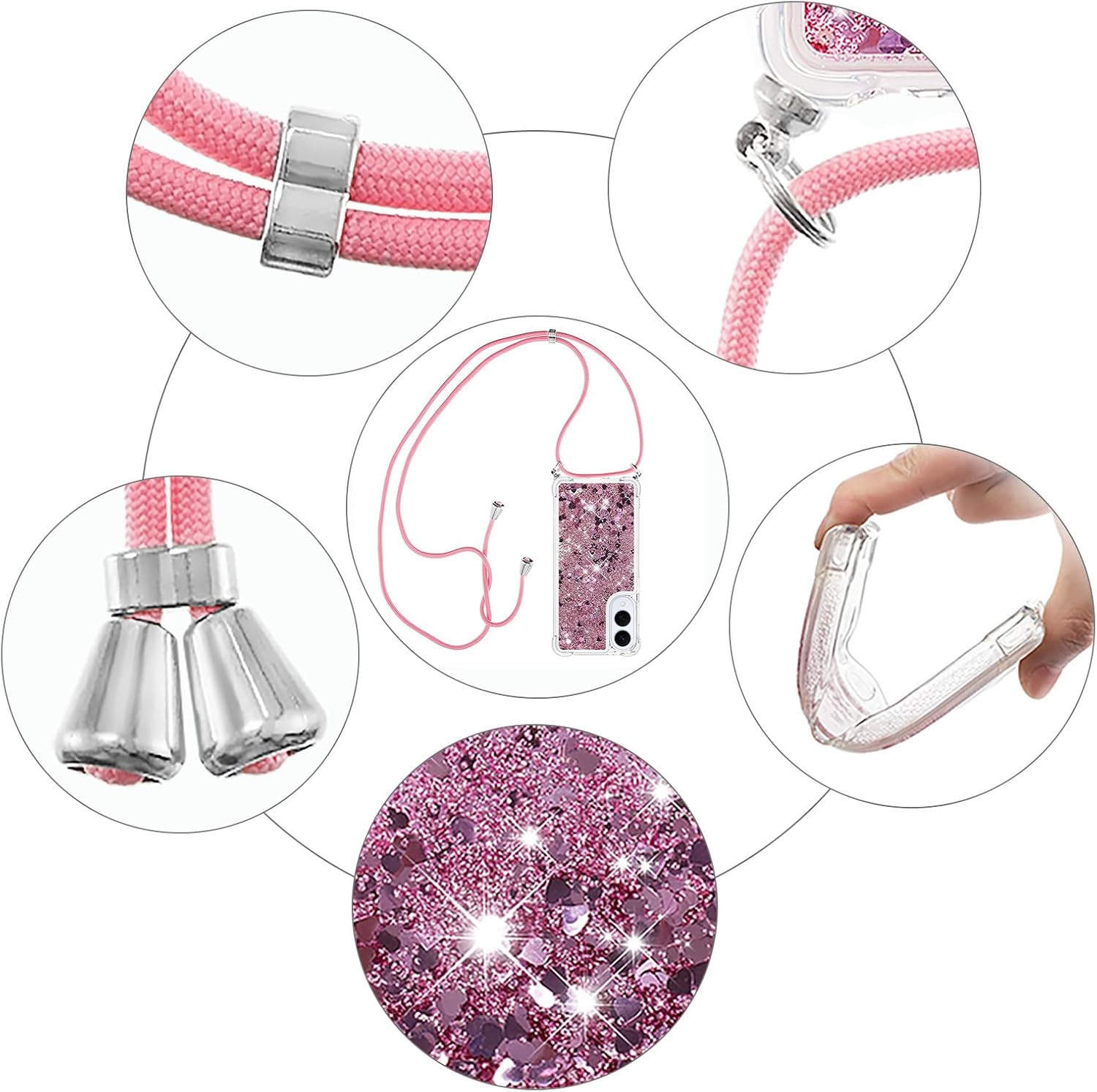 Présentation de la coque téléphone avec lanière IMIRST Conçue spécialement pour nos clients britanniques, IMIRST s’engage à vous offrir un service impeccable et des produits de haute qualité. Nos coques de téléphone sont non seulement élégantes dans leur design, mais aussi minutieusement conçues pour s’adapter parfaitement à votre appareil tout en améliorant sa fonctionnalité quotidienne. Et la meilleure partie ? Elles sont proposées à un prix raisonnable, ce qui en fait le choix ultime pour vous ! Assurer la sécurité de votre téléphone est notre priorité absolue. Notre coque avec lanière est dotée d’une peau intérieure en silicone de haute qualité, d’une couverture externe en PC résistante aux chocs et de coins spéciaux avec coussin d’air pour une protection optimale contre les chutes et autres impacts. Soyez assuré que votre appareil restera intact. Mais ce n’est pas tout ! Le design fluide et captivant, orné de pièces décoratives brillantes, ajoute une touche supplémentaire d’allure à notre coque. La lanière ajustable offre une commodité mains libres, vous offrant la liberté et la tranquillité d’esprit que vous désirez. Avec IMIRST, vous pouvez vous attendre à une expérience d’achat exceptionnelle. Notre équipe de support client est toujours prête à vous aider pour toutes questions ou préoccupations. Votre satisfaction est notre principale préoccupation et nous aspirons à être votre partenaire de confiance. Le package comprend 1 x coque avec lanière (le téléphone portable n’est pas inclus). Alors, pourquoi attendre ? Faites l’expérience de la différence IMIRST et élevez la protection de votre téléphone à un tout autre niveau. Commandez maintenant et profitez de la tranquillité d’esprit que vous méritez !