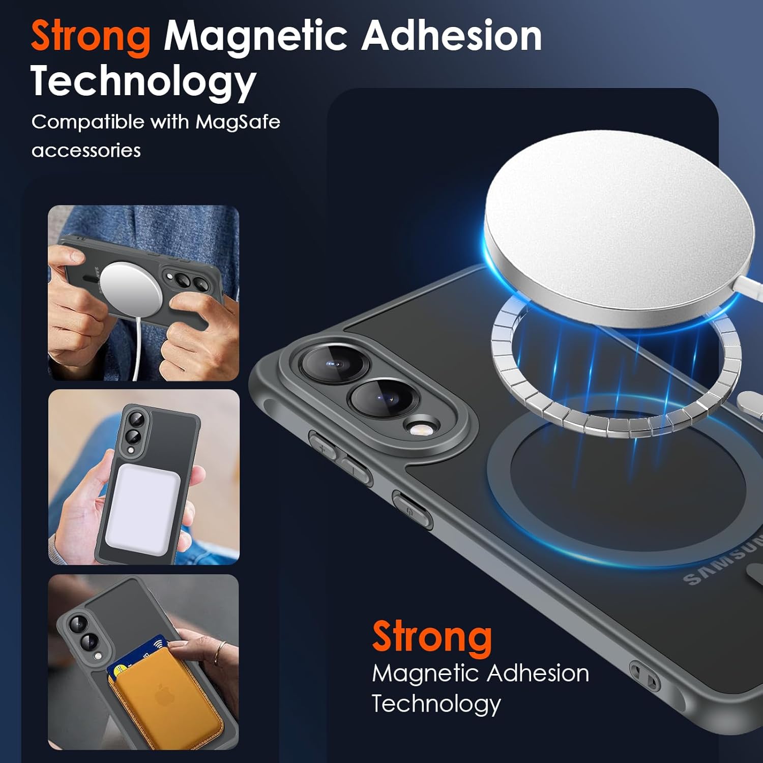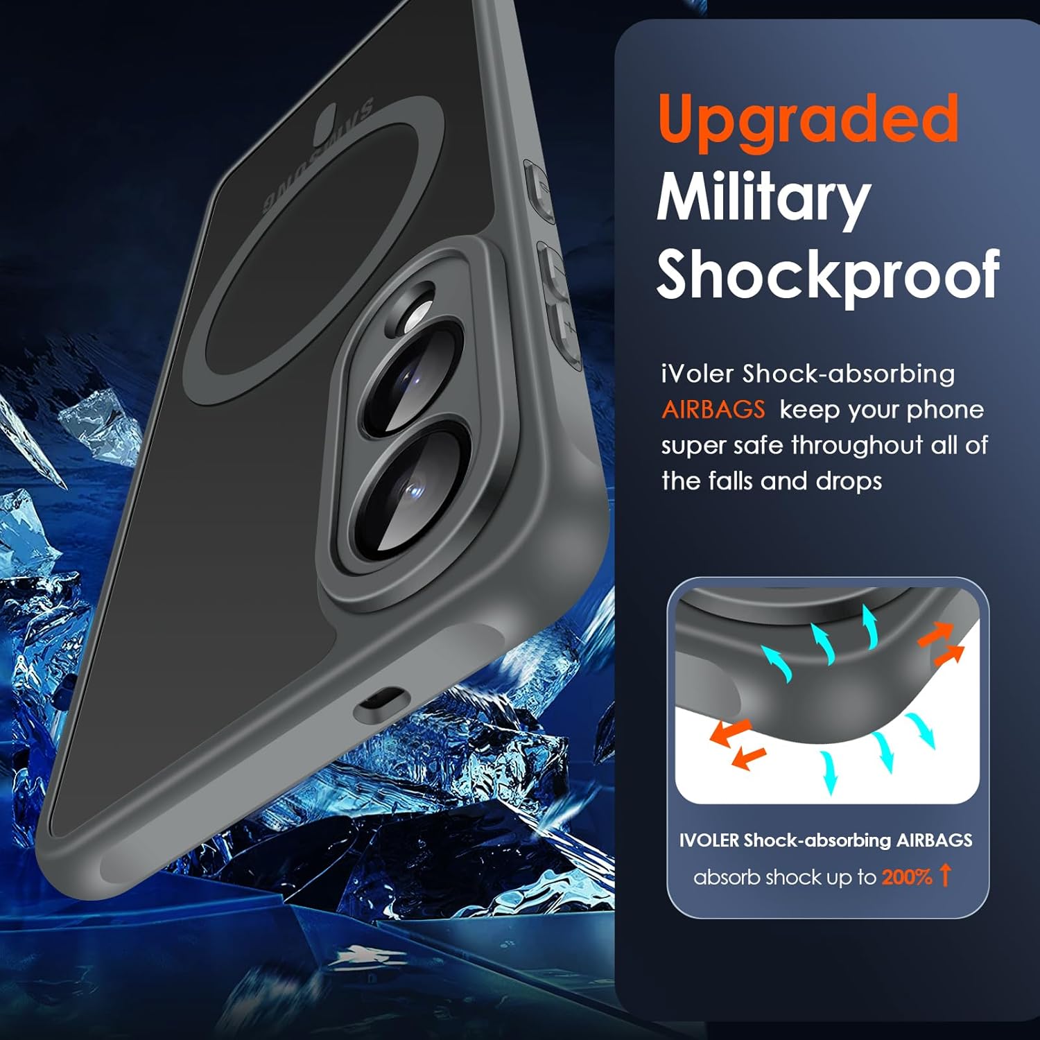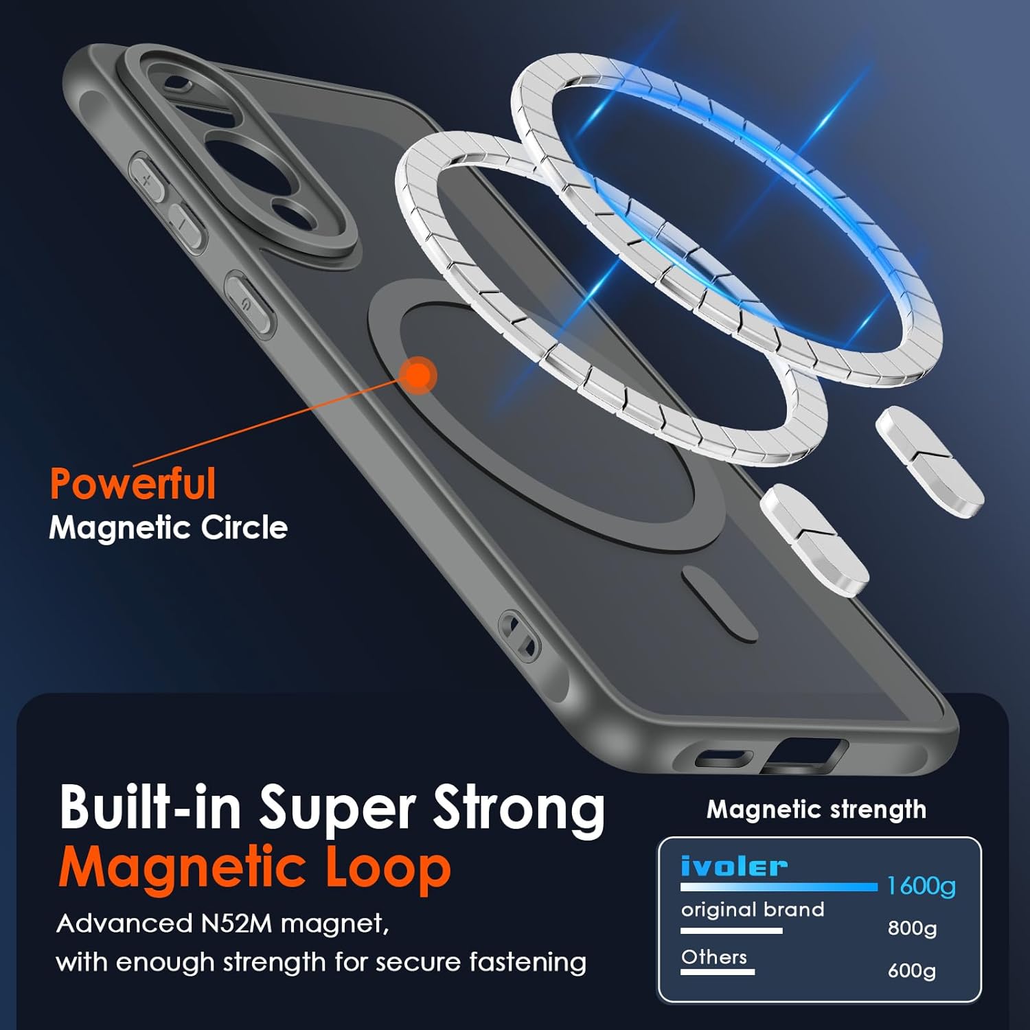 (Industry Leader Magnetic Force) — 36 aimants « N52 » intégrés, la force magnétique est augmentée de 150 % grâce au réseau Halbach-Array optimisé, qui peut supporter jusqu’à 1,5 kg de poids – la force magnétique la plus puissante du marché. Il est compatible avec la plupart des accessoires magnétiques tels que les chargeurs sans fil, les supports magnétiques pour voiture, les batteries magnétiques, les portefeuilles magnétiques, etc.