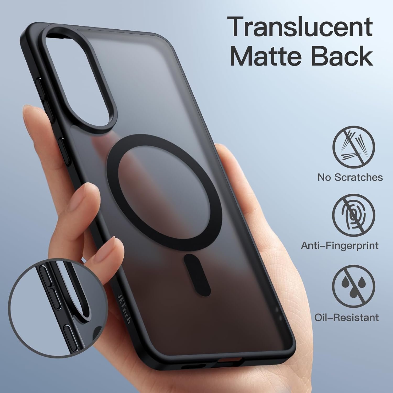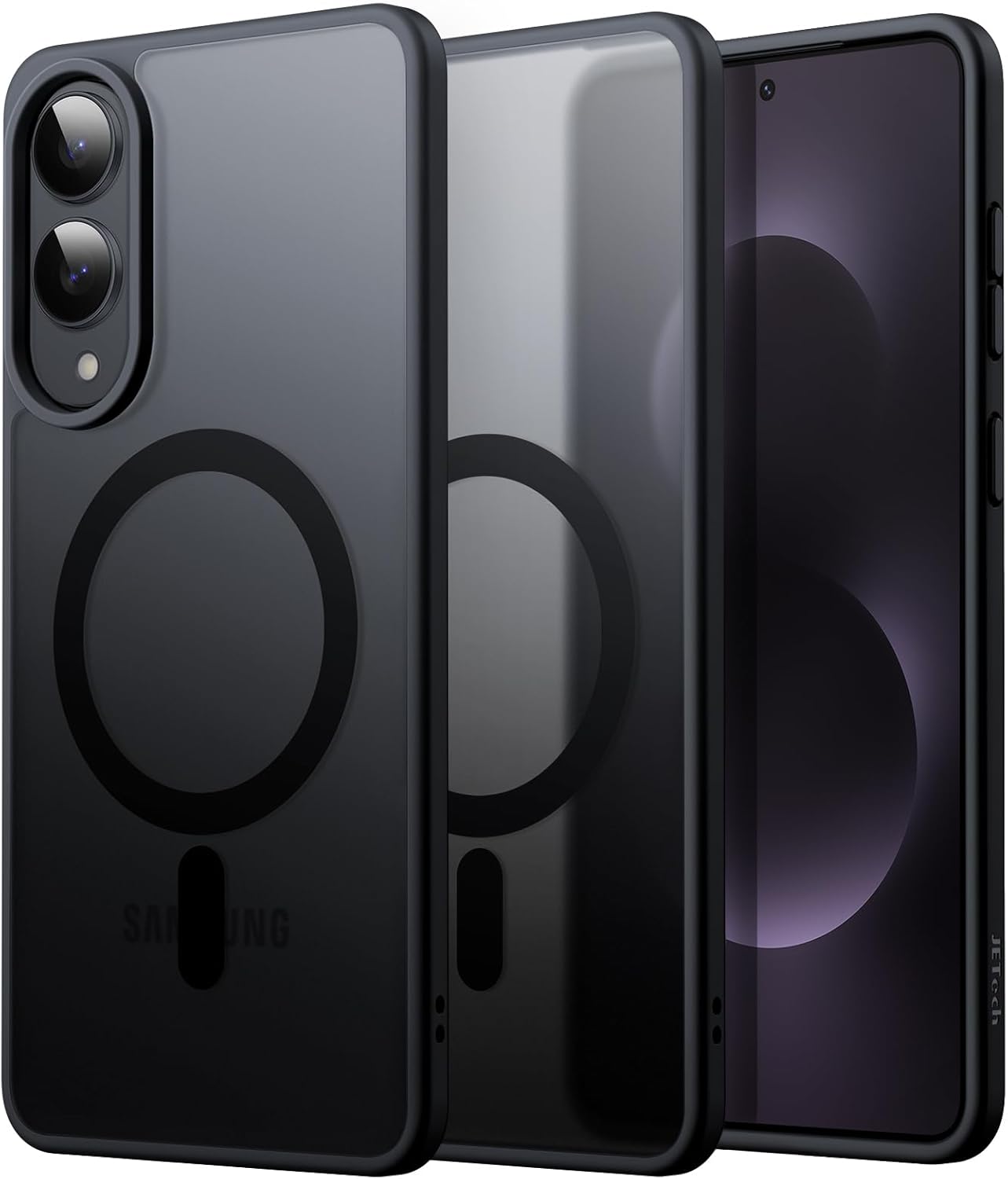 Samsung s25 Edge – JETech Coque magnétique pour Samsung Galaxy S25 Edge, compatible avec MagSafe, translucide fine minimaliste résistante aux chocs, coque arrière mate (Noir)