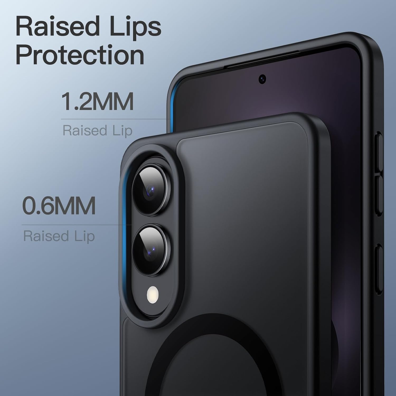 (Plus protecteur) Les bords surélevés réfléchis autour de l’écran et de l’appareil photo offrent une protection supplémentaire contre les rayures de surface