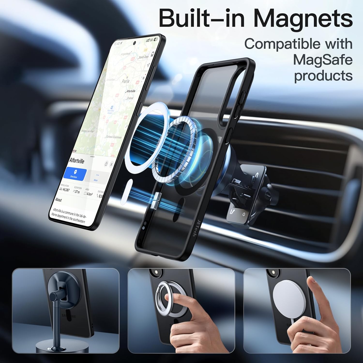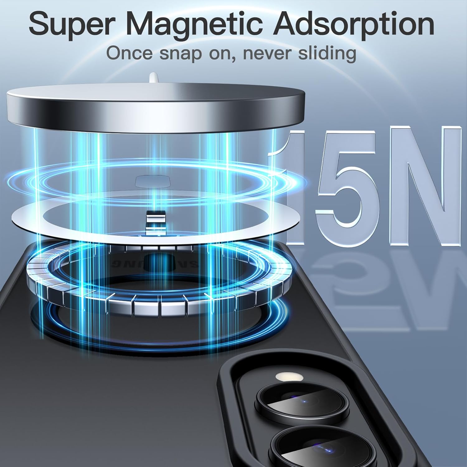 (Super Adsorption Magnétique) Forte fixation magnétique au chargeur. Une fois engagé, ne glisse jamais. Compatible avec les accessoires MagSafe, tels que le portefeuille, le support de bague et la banque d’alimentation