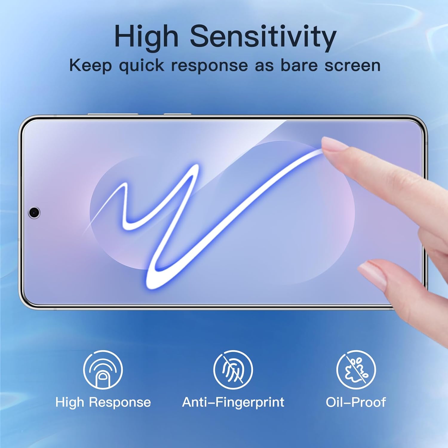 (Anti-empreintes digitales) Le revêtement hydrophobe et oléophobe empêche efficacement les empreintes digitales, les résidus d’huile et de filigrane de s’accumuler sur l’écran.