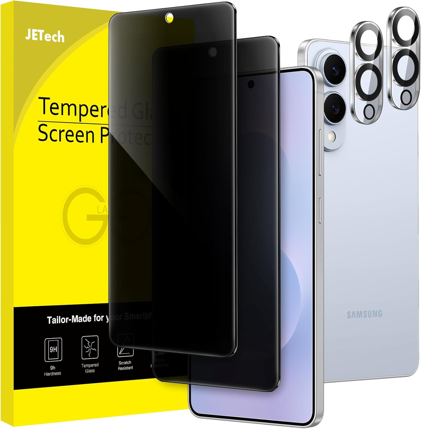 Samsung s25 Edge – JETech Lot de 2 films de protection d’écran anti-espion pour Samsung Galaxy S25 Edge avec protecteur d’objectif d’appareil photo, film en verre trempé compatible avec empreintes digitales et identification