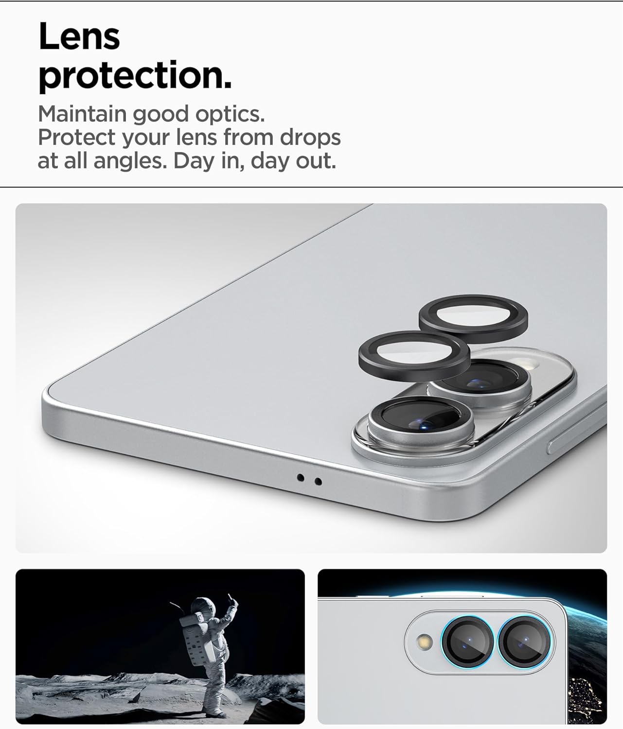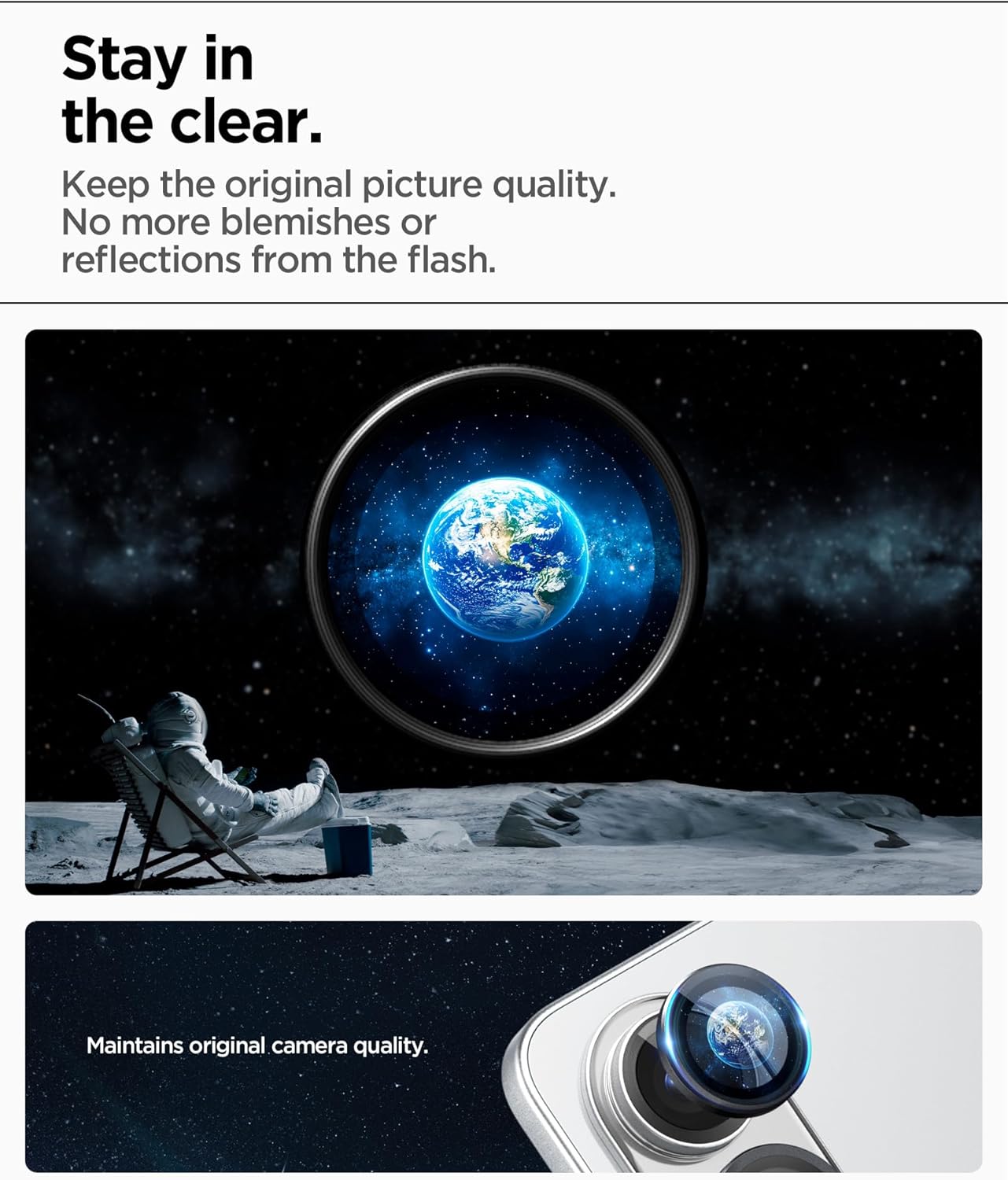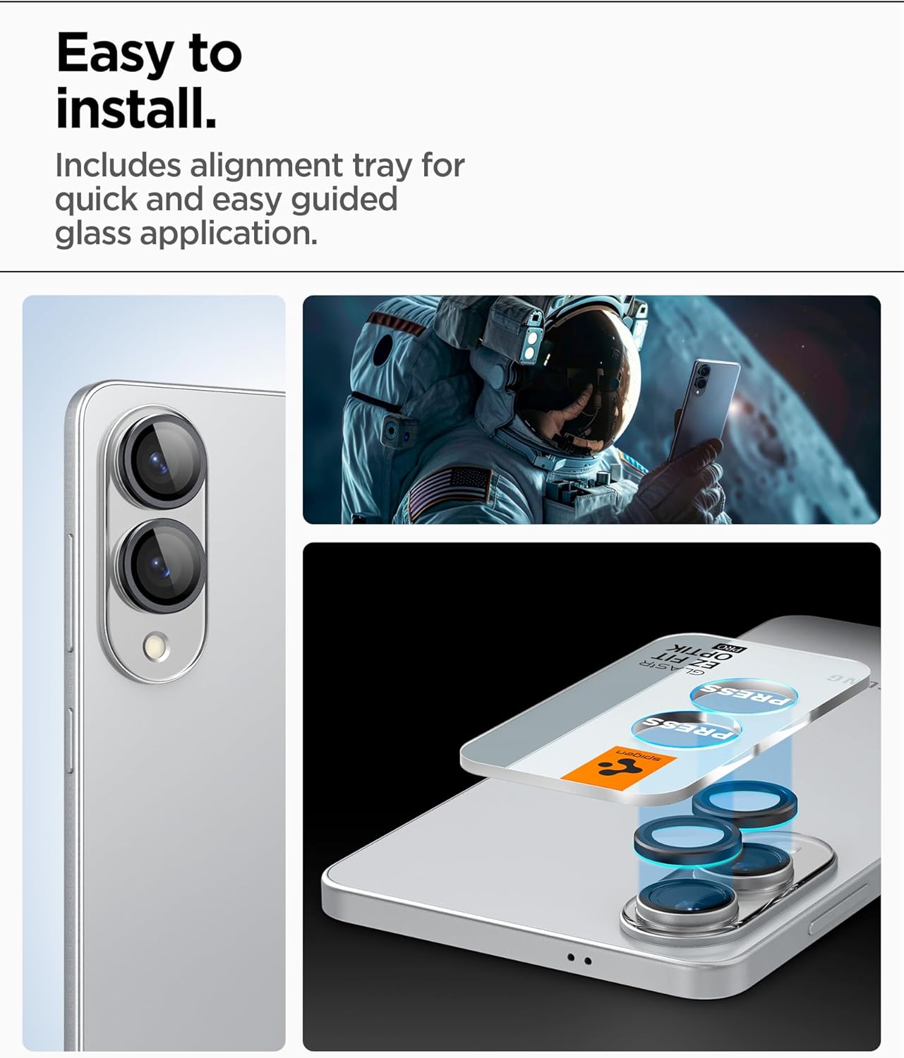 Note; Pour une adhérence parfaite, appuyez fermement le protecteur d’appareil photo sur l’appareil photo et laissez environ 48 heures pour que la colle prenne complètement ; Ce produit n’est pas compatible avec d’autres produits Spigen Optik, veuillez donc l’utiliser uniquement pour la zone de la caméra