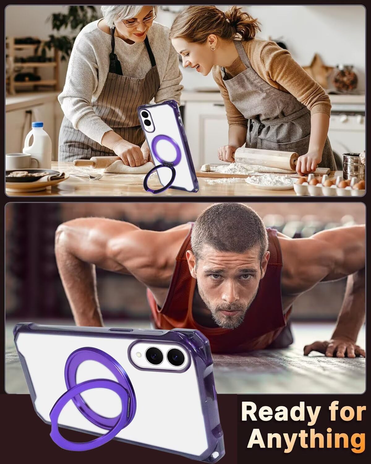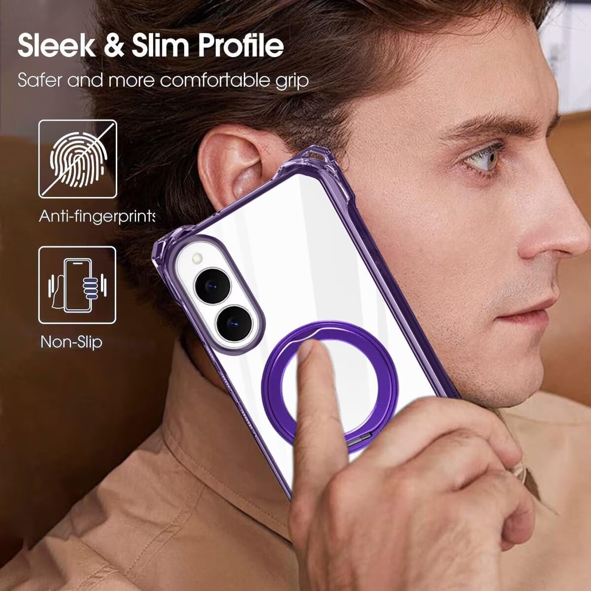 Samsung Galaxy S25 Edge Le support de téléphone portable peut pivoter à 360 degrés et offre la meilleure position pour regarder des films ou des vidéos. Pièce magnétique métallique intégrée pour une adsorption stable, peut être directement fixée au support de montage magnétique de la voiture (la commande du support magnétique de voiture n’est pas incluse).
