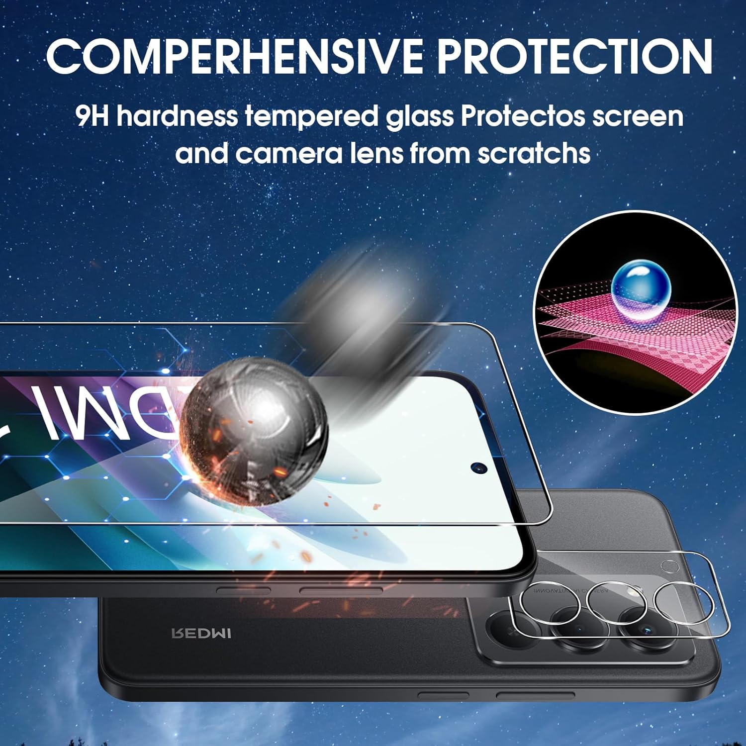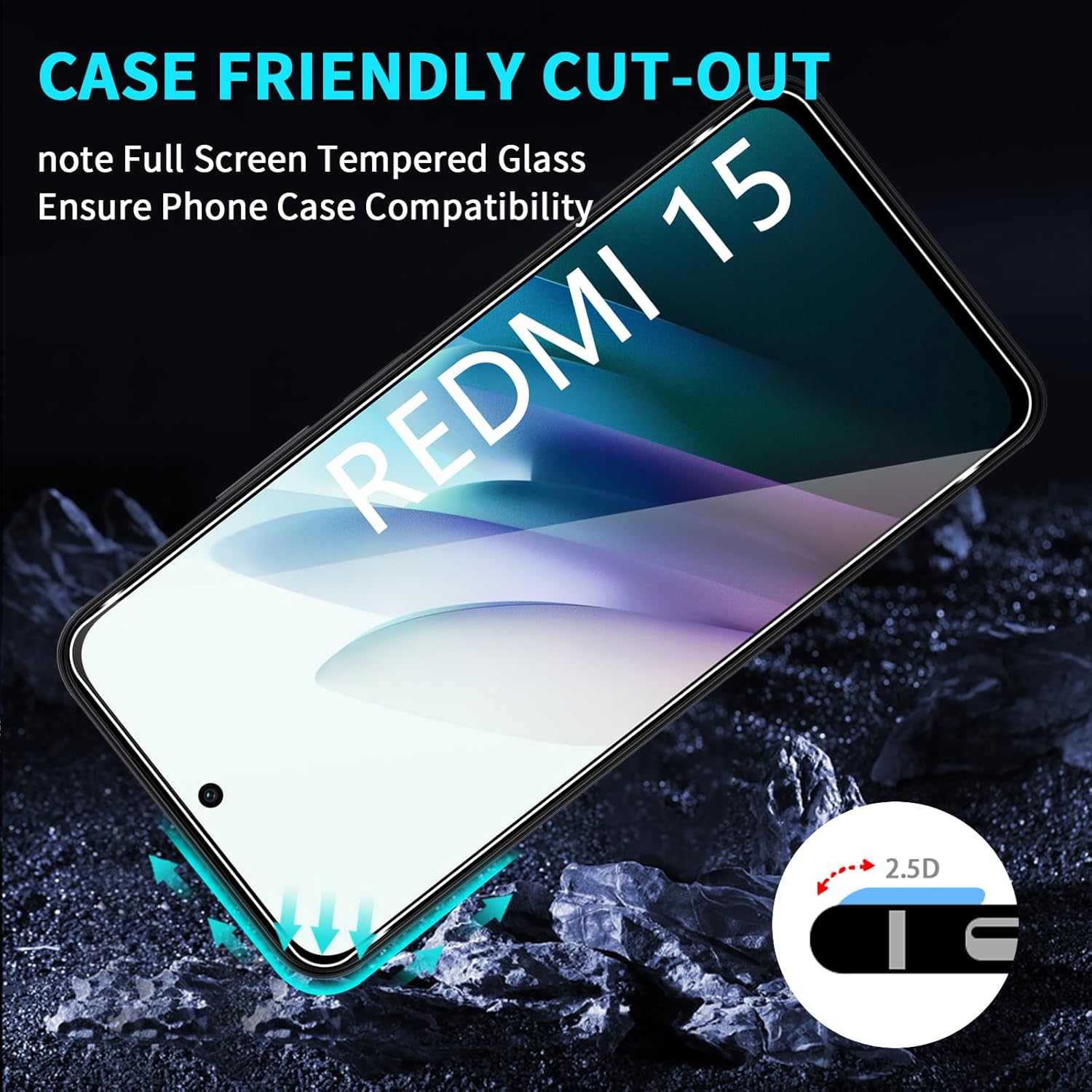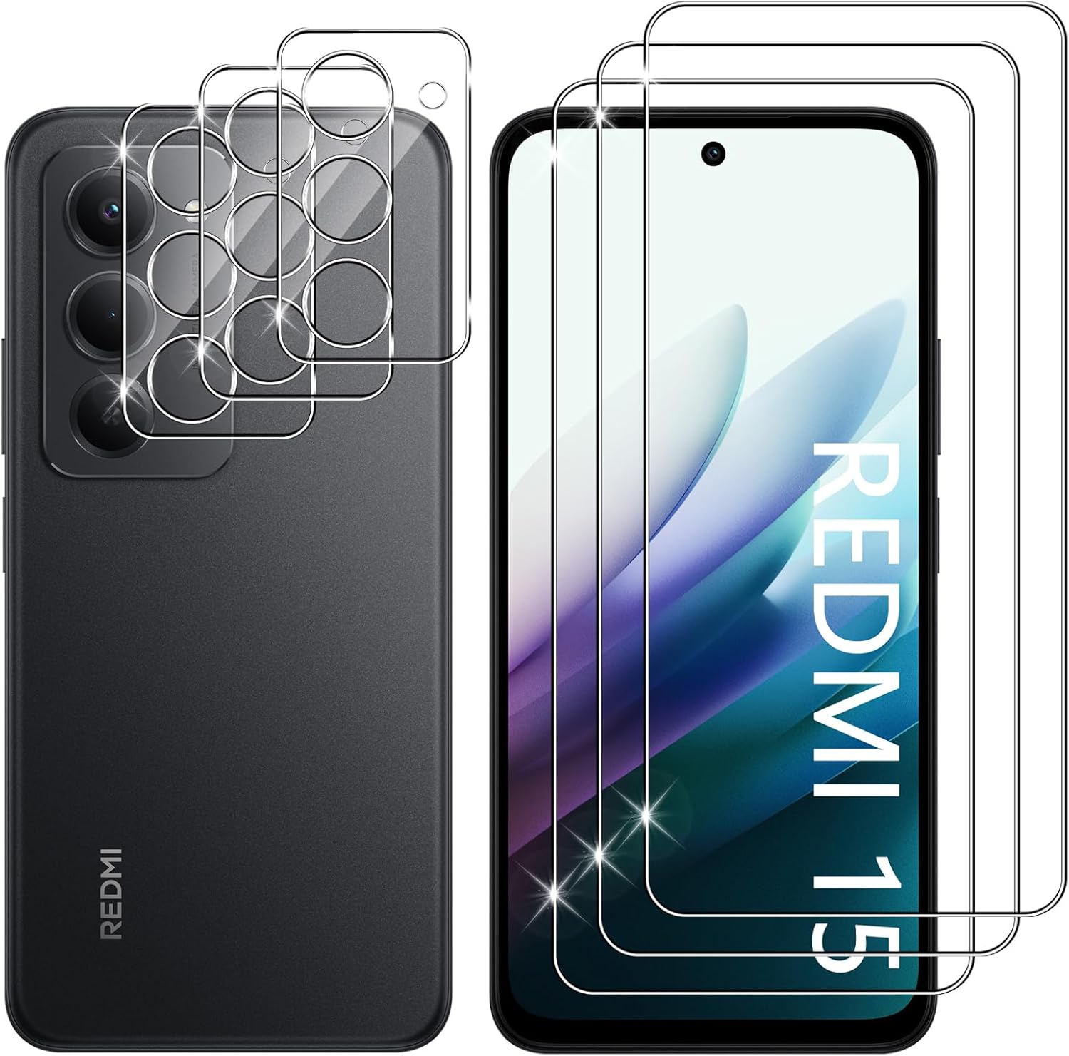Compatibilité: Ce protecteur d’écran en verre trempé et le protecteur d’écran de la caméra arrière en verre trempé adapté à Xiaomi Redmi 15, ne conviennent à aucun autre modèle de téléphone