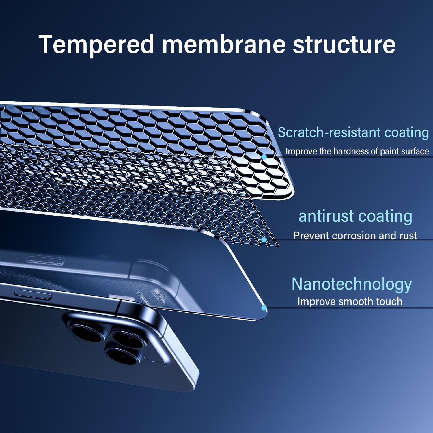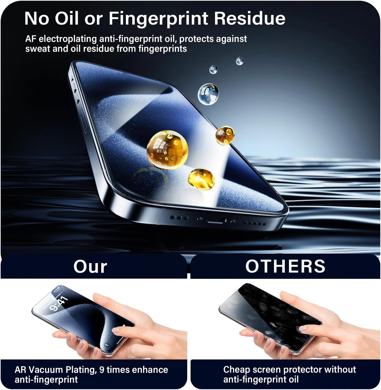 • Le revêtement oléophobe empêche l’accumulation des empreintes digitales, la transpiration et la graisse, en gardant l’écran propre et confortable à utiliser.