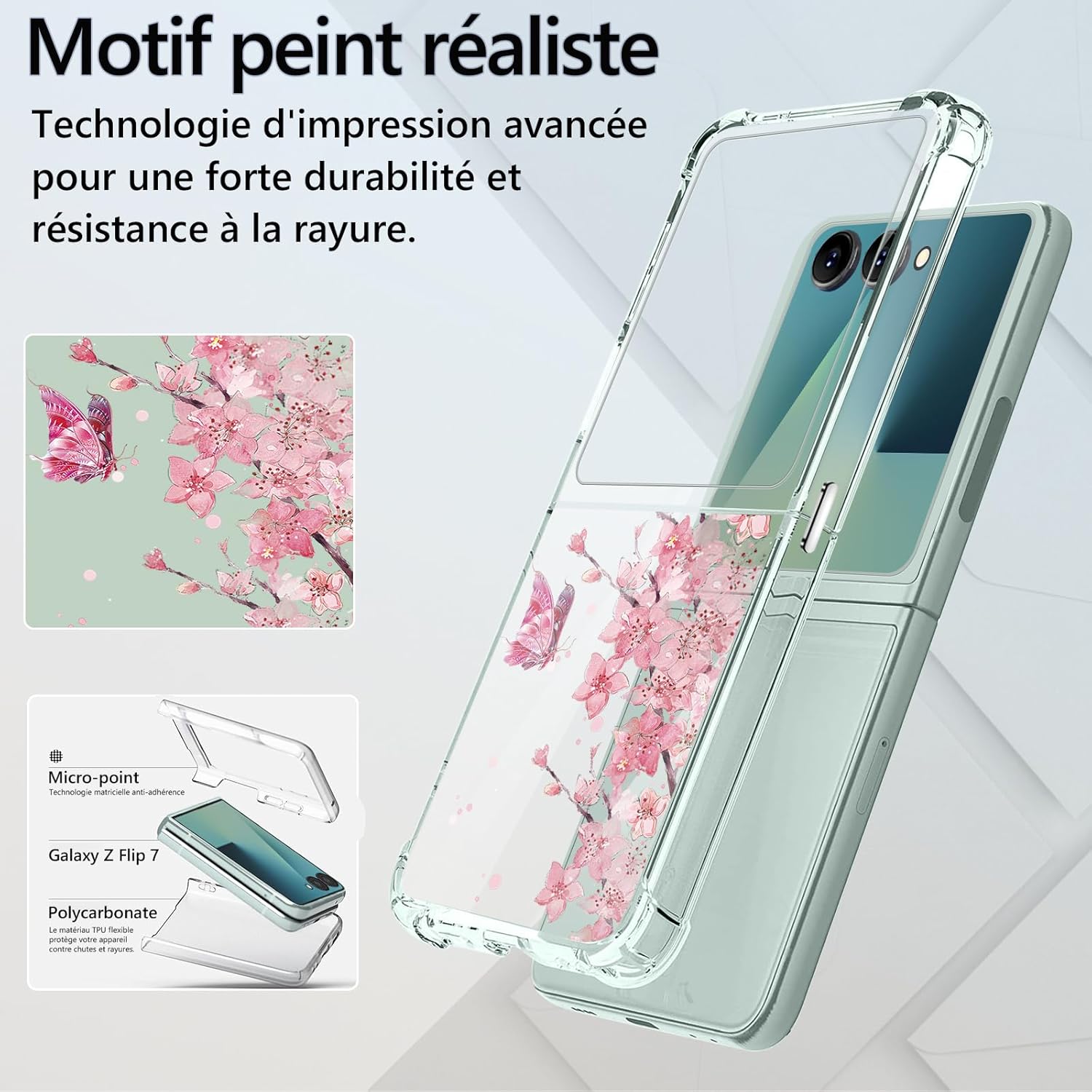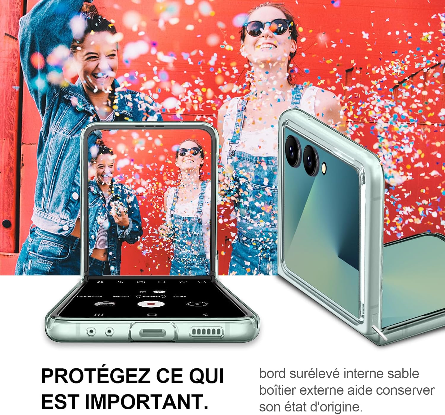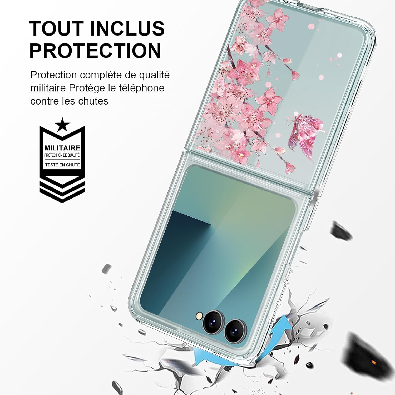 1. Le cas de Samsung Galaxy Z Flip 7 5G Clear Shockproof offre une protection lourde et met en évidence la conception